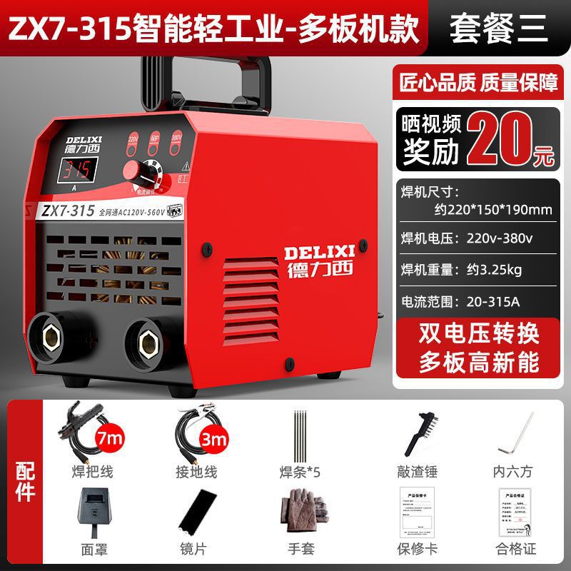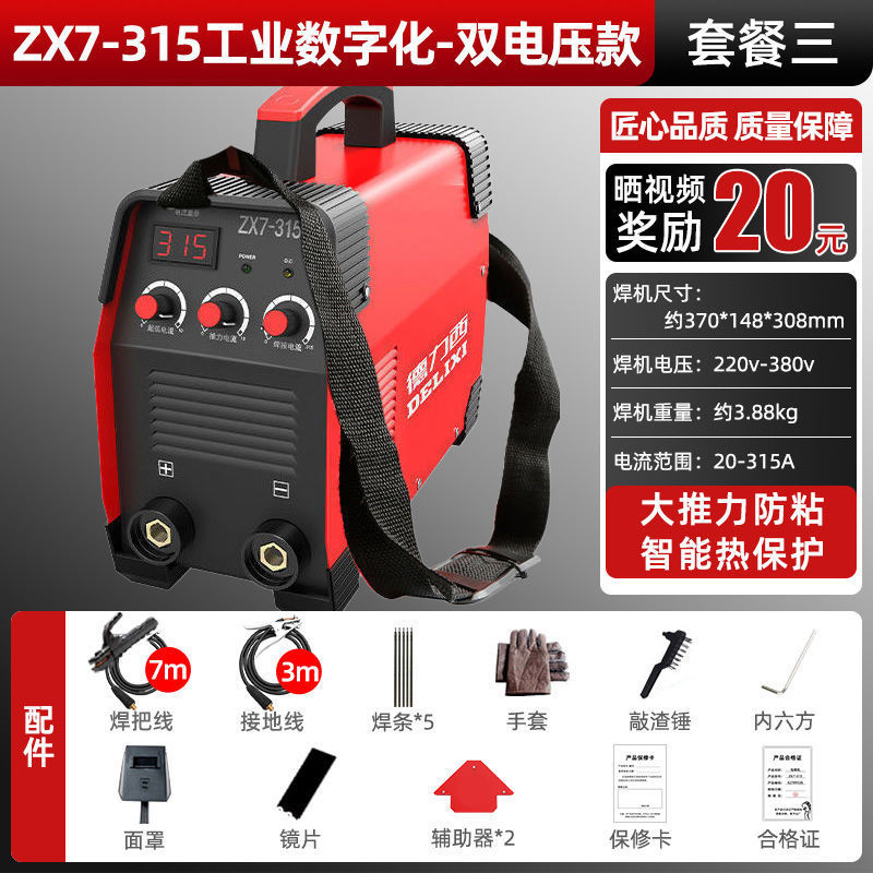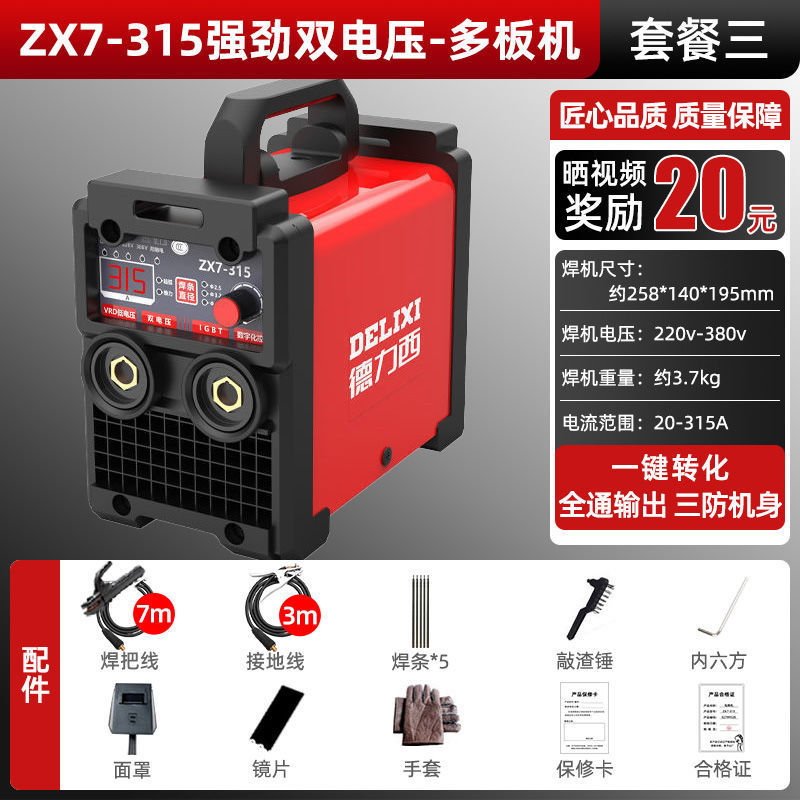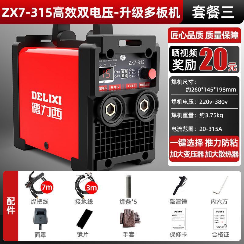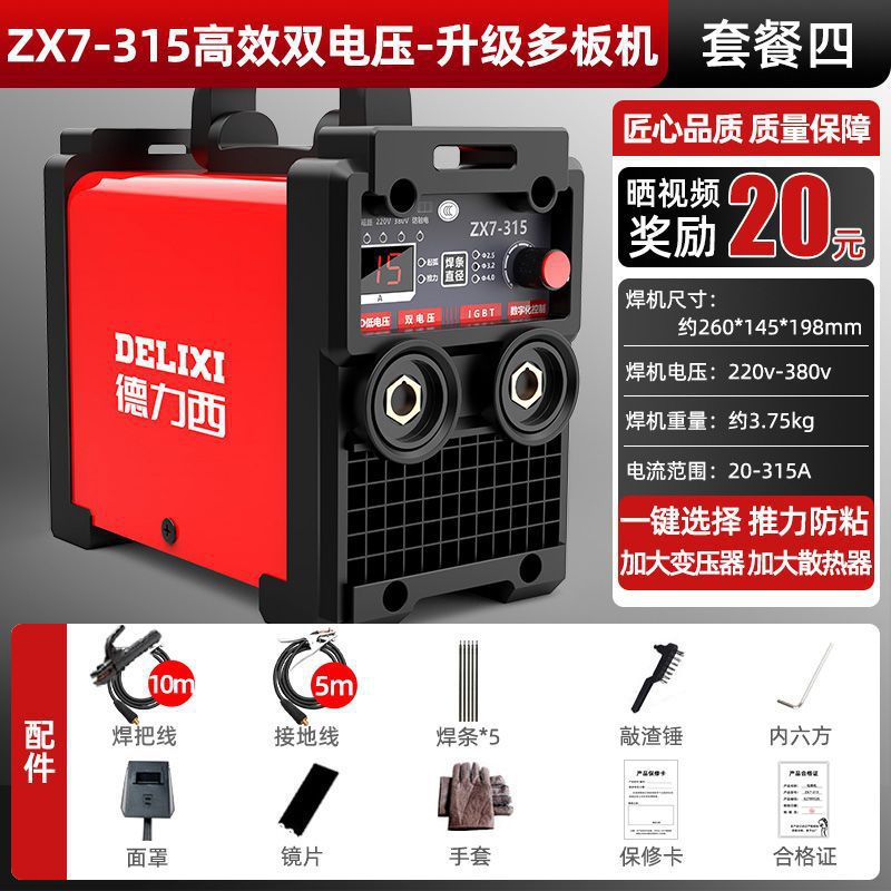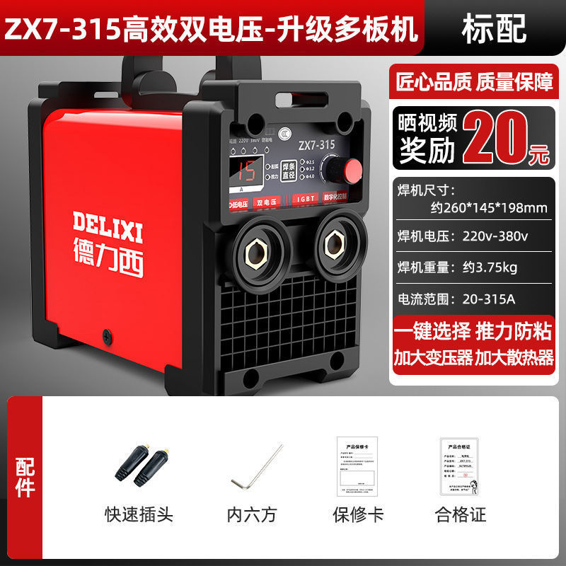 Delixi 315 전기 용접 기계 220v 380v 가정용 작은 이중 목적 완전 자동 이중 전압 전 구리 DC 용접 기계