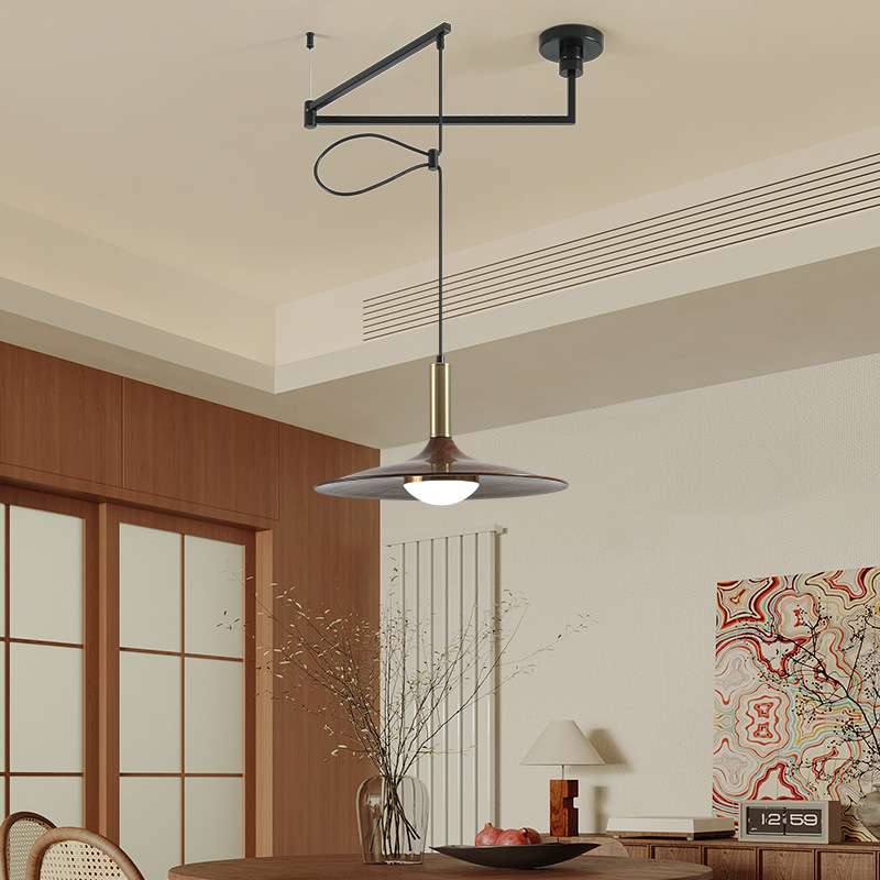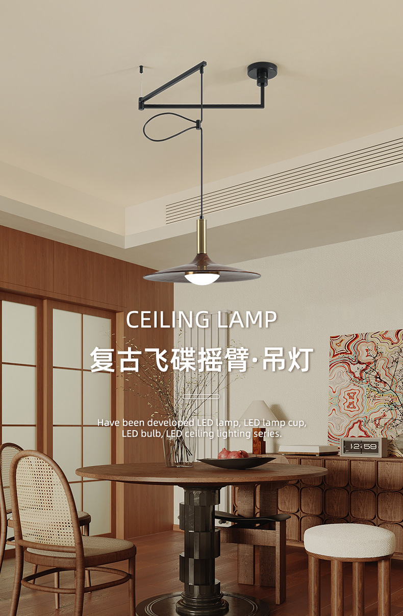 골동품 스타일 로커 레스토랑 비행 접시 샹들리에 일본식 복고풍 조용한 바람 식탁 호두 우드 그레인 눈 보호 침실 램프