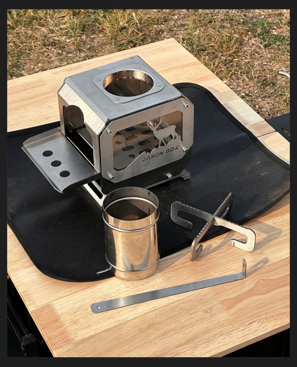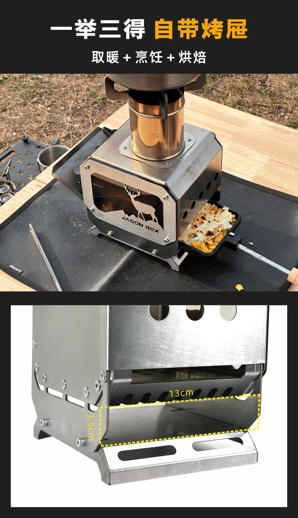 Jensen 야외 화재 관찰 창 데스크탑 장작 스토브 탄소 스토브 텐트 난방 야생 캠핑 스테인레스 스틸 접이식 미니 오븐