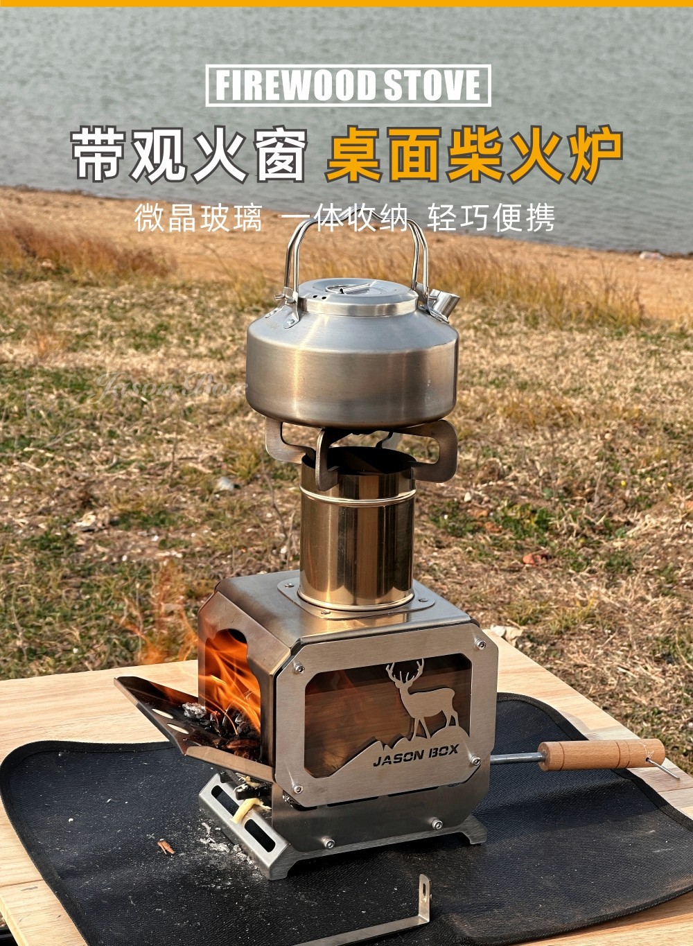 Jensen 야외 화재 관찰 창 데스크탑 장작 스토브 탄소 스토브 텐트 난방 야생 캠핑 스테인레스 스틸 접이식 미니 오븐스토어 가기