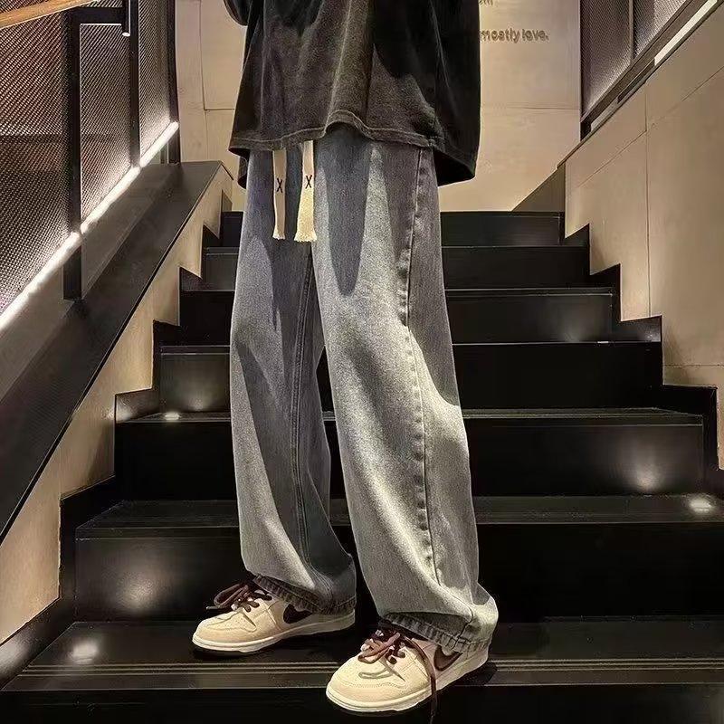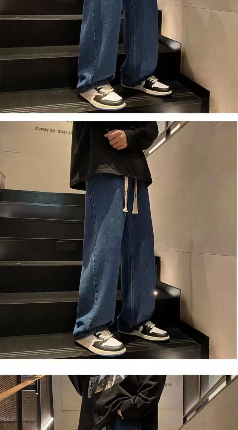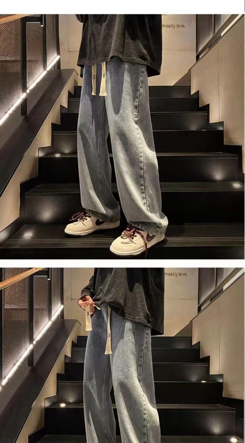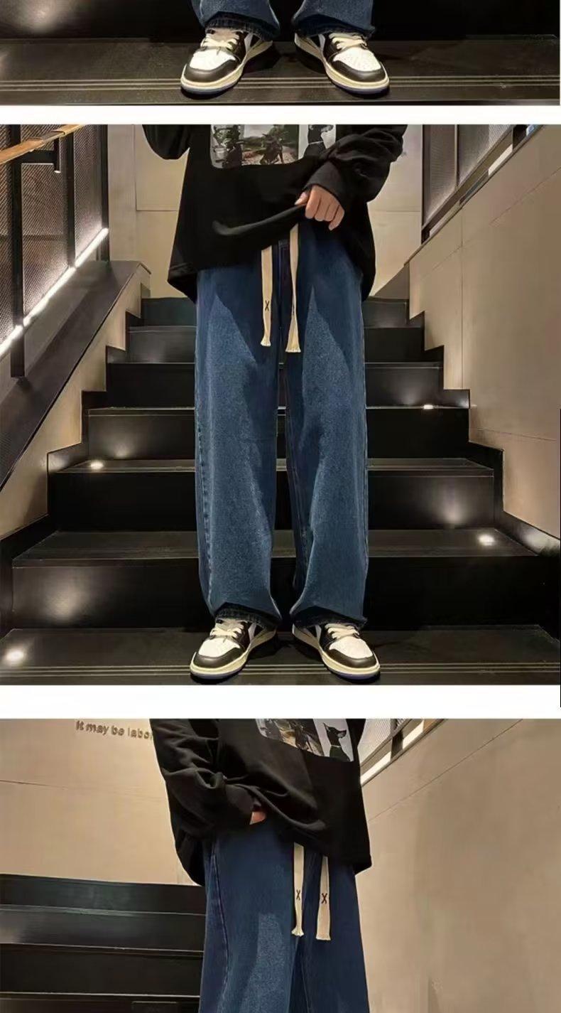 2025 솔리드 컬러 레트로 청바지 스트레이트 레그 루즈 트렌디 와이드 레그 아메리칸 스타일 하이 스트리트 청소년 캐주얼 롱 바지 남성스토어 가기