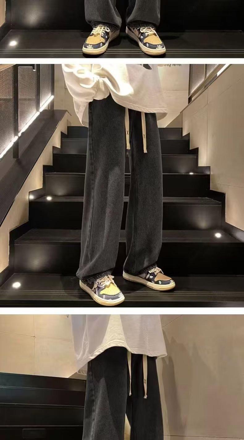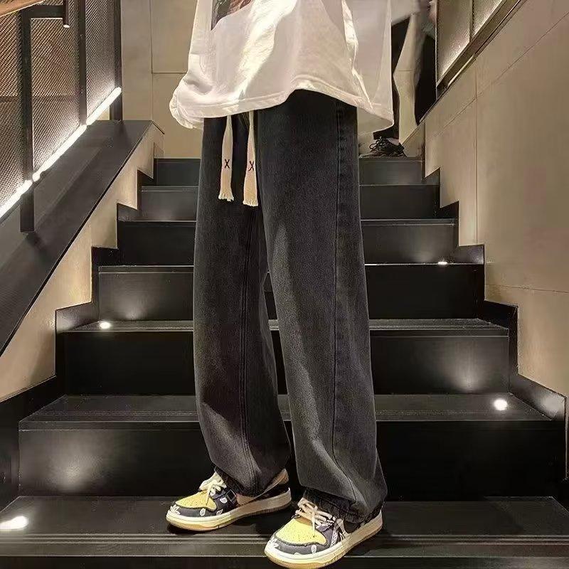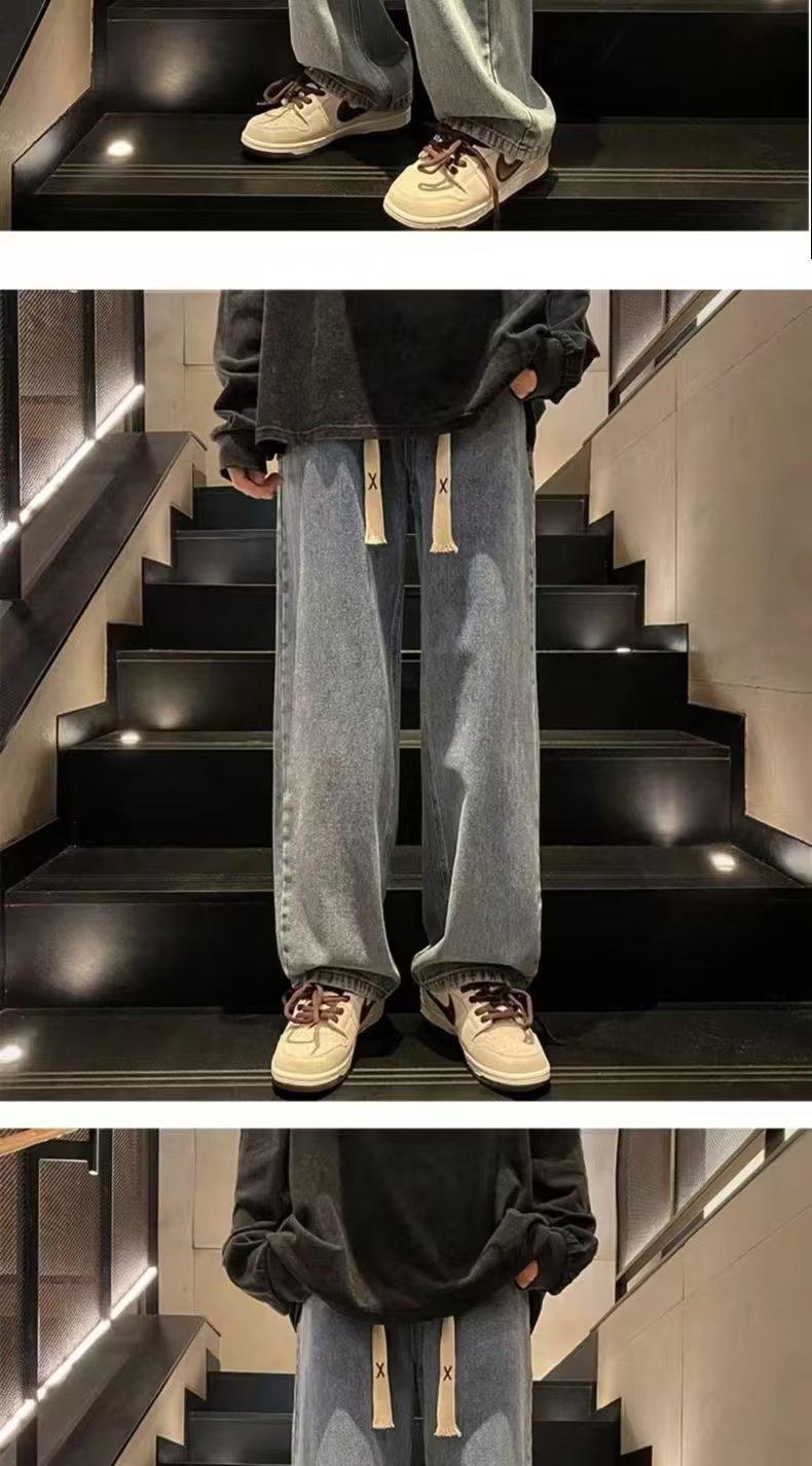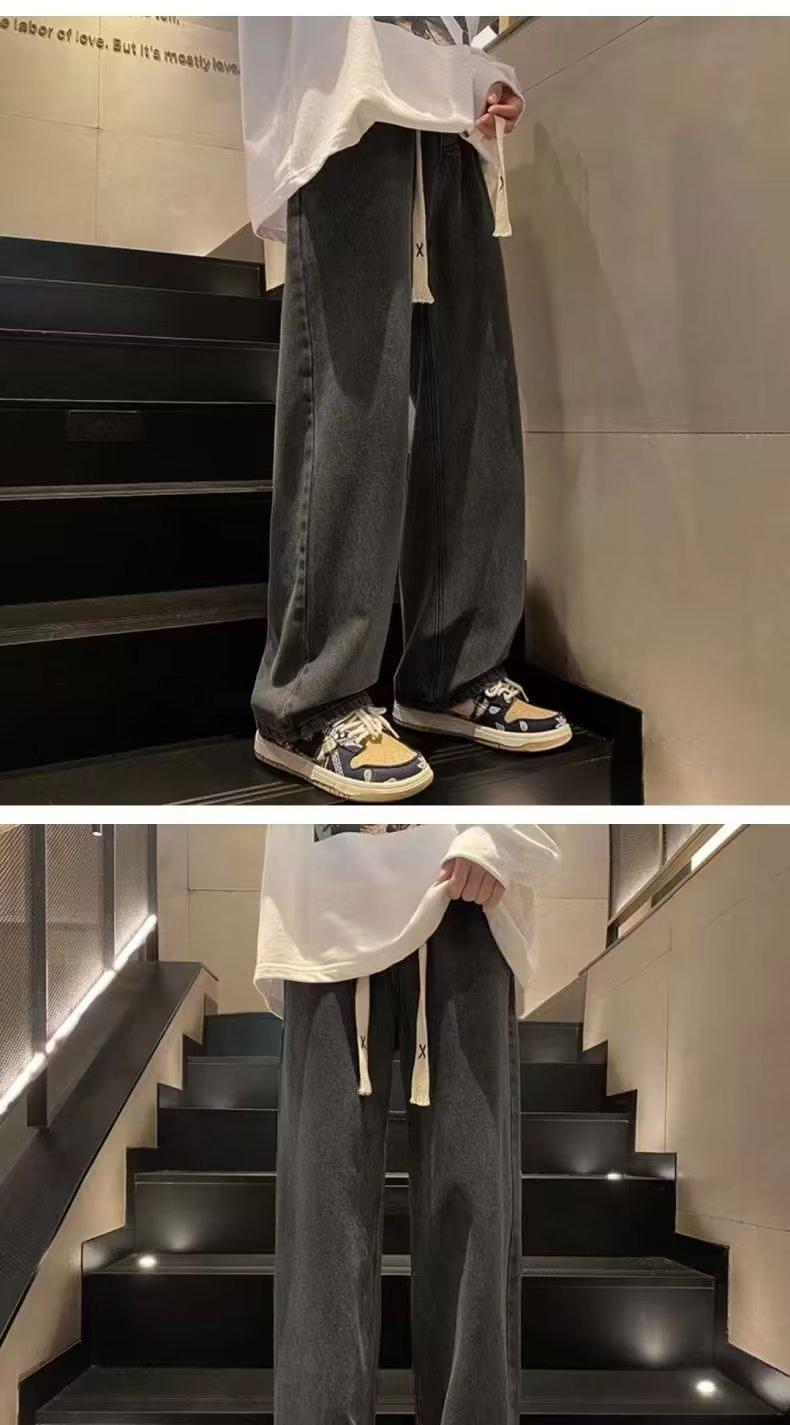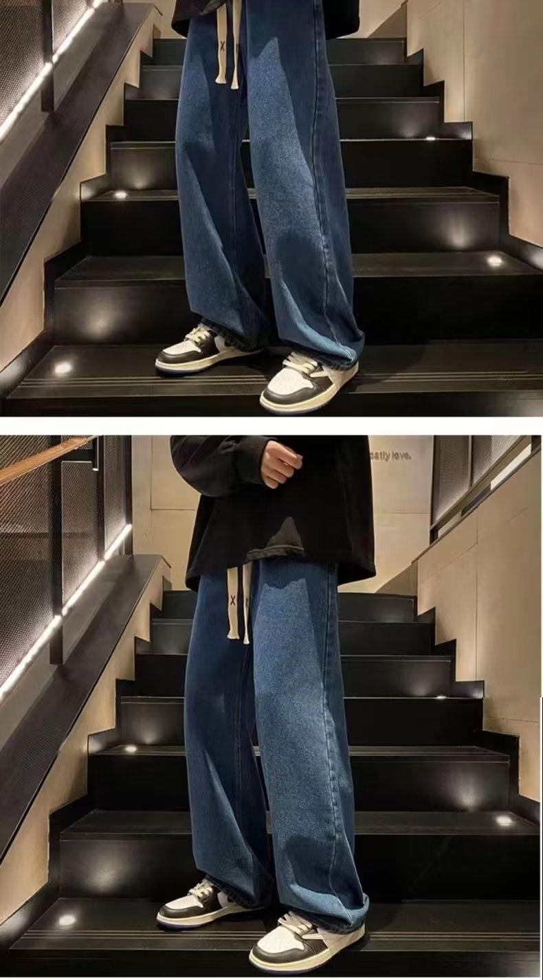 2025 솔리드 컬러 레트로 청바지 스트레이트 레그 루즈 트렌디 와이드 레그 아메리칸 스타일 하이 스트리트 청소년 캐주얼 롱 바지 남성스토어 가기