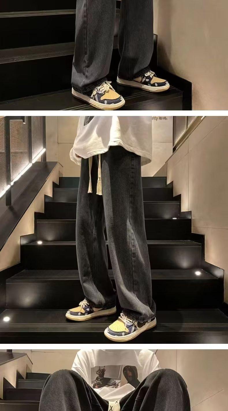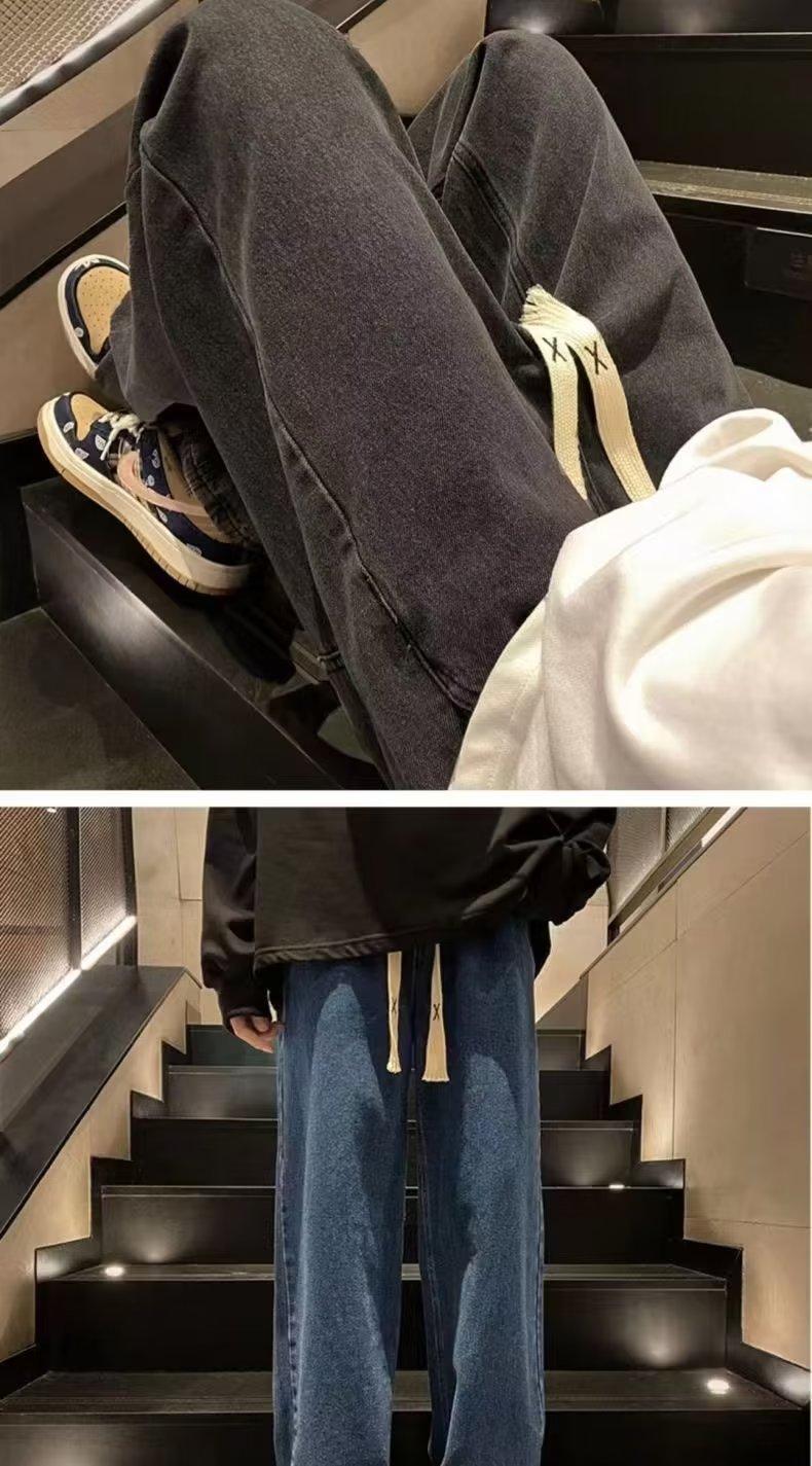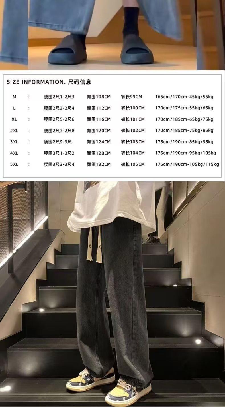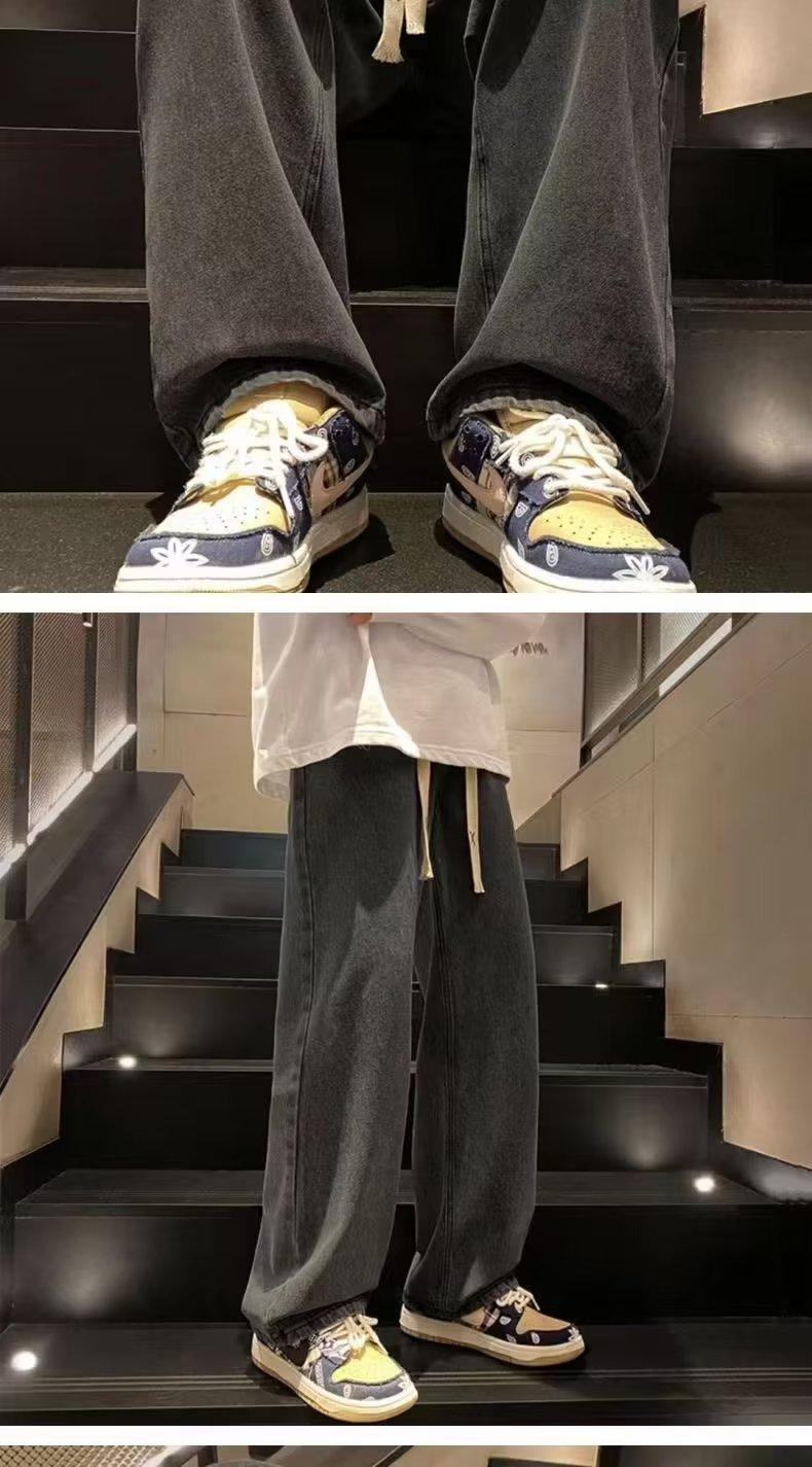 2025 솔리드 컬러 레트로 청바지 스트레이트 레그 루즈 트렌디 와이드 레그 아메리칸 스타일 하이 스트리트 청소년 캐주얼 롱 바지 남성스토어 가기