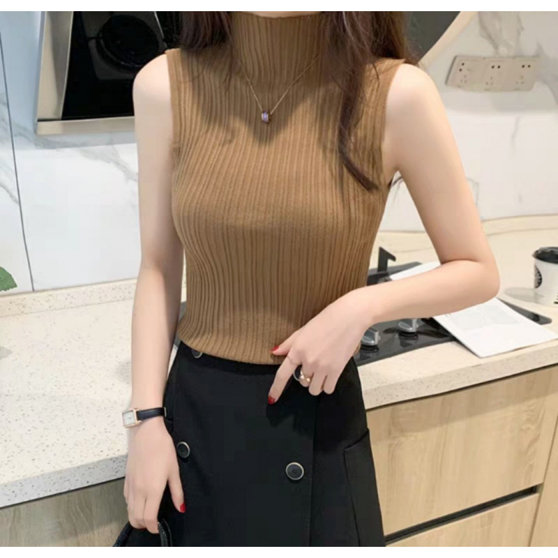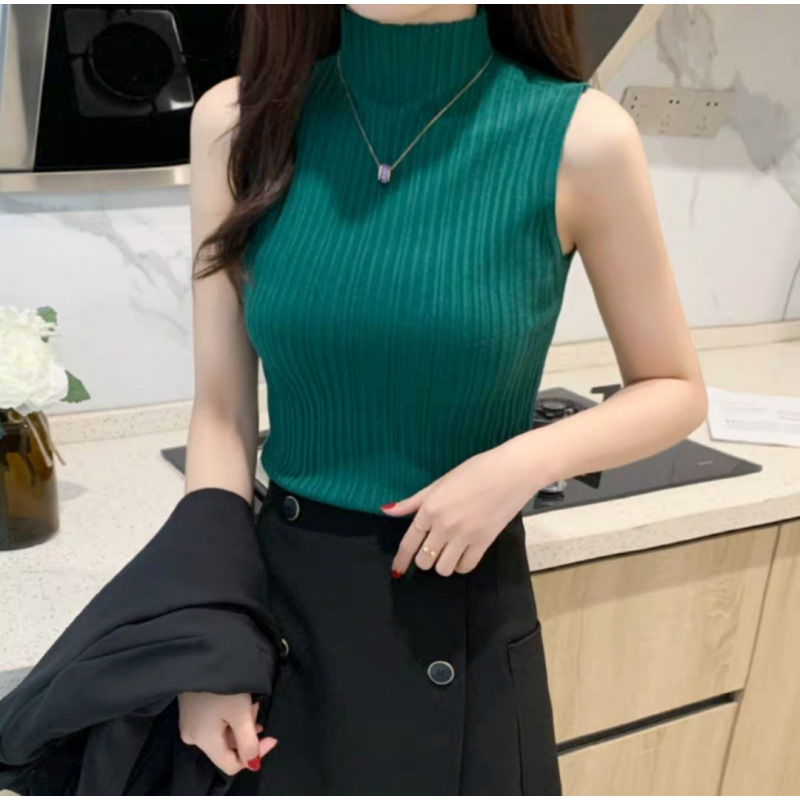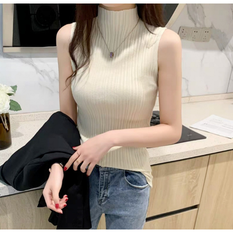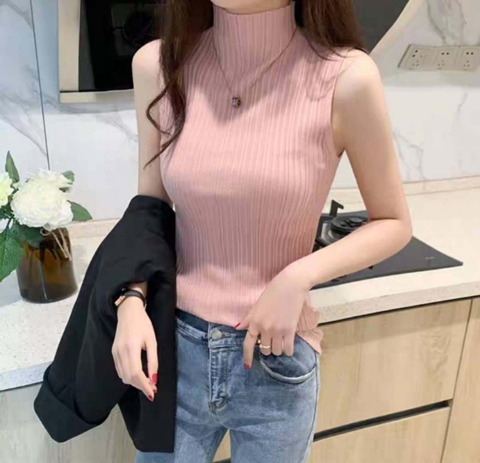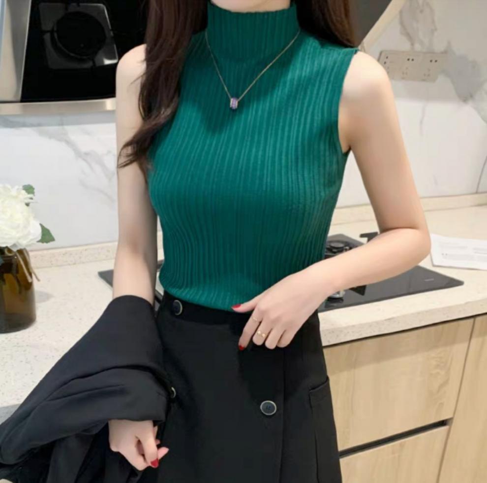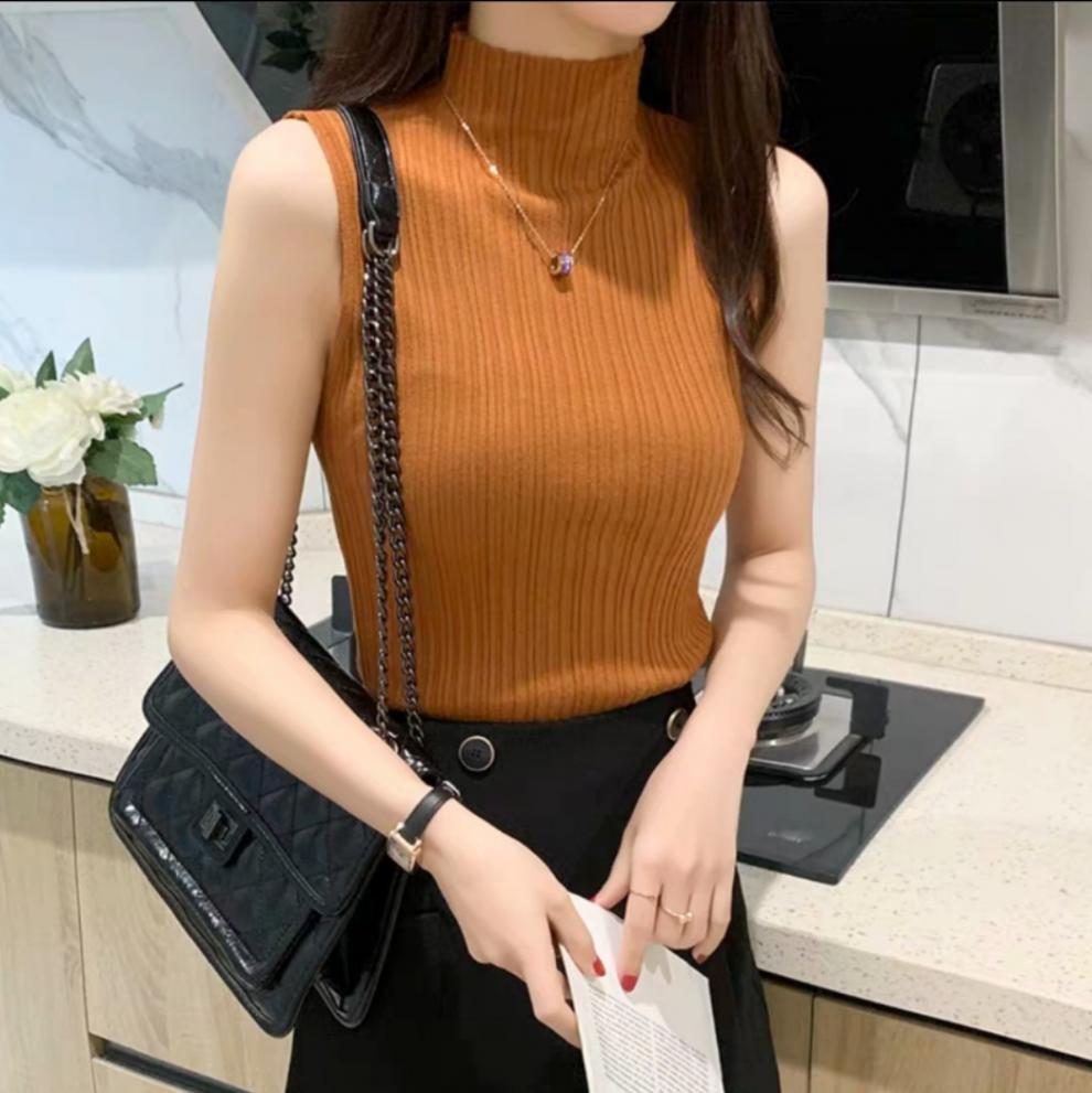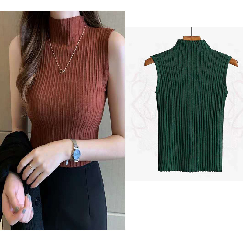 민소매 스웨터 여성의 하프 하이 넥 소프트 왁스 얇은 스웨터 슬림 핏 슬리밍 솔리드 컬러 패턴 우아한베이스 셔츠스토어 가기