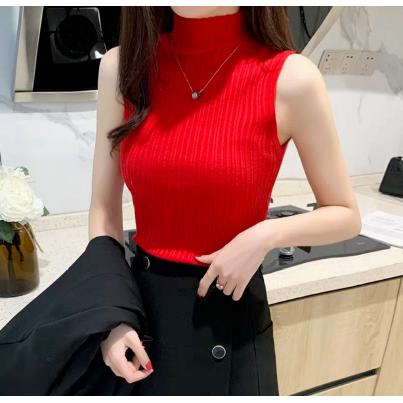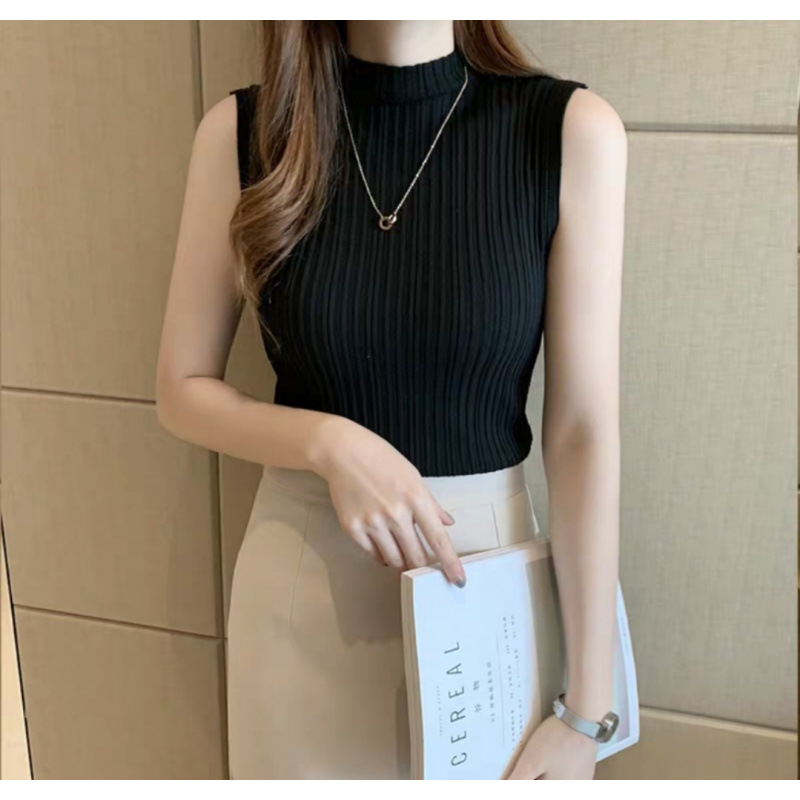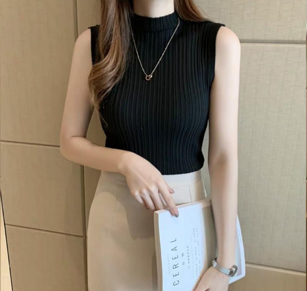 민소매 스웨터 여성의 하프 하이 넥 소프트 왁스 얇은 스웨터 슬림 핏 슬리밍 솔리드 컬러 패턴 우아한베이스 셔츠