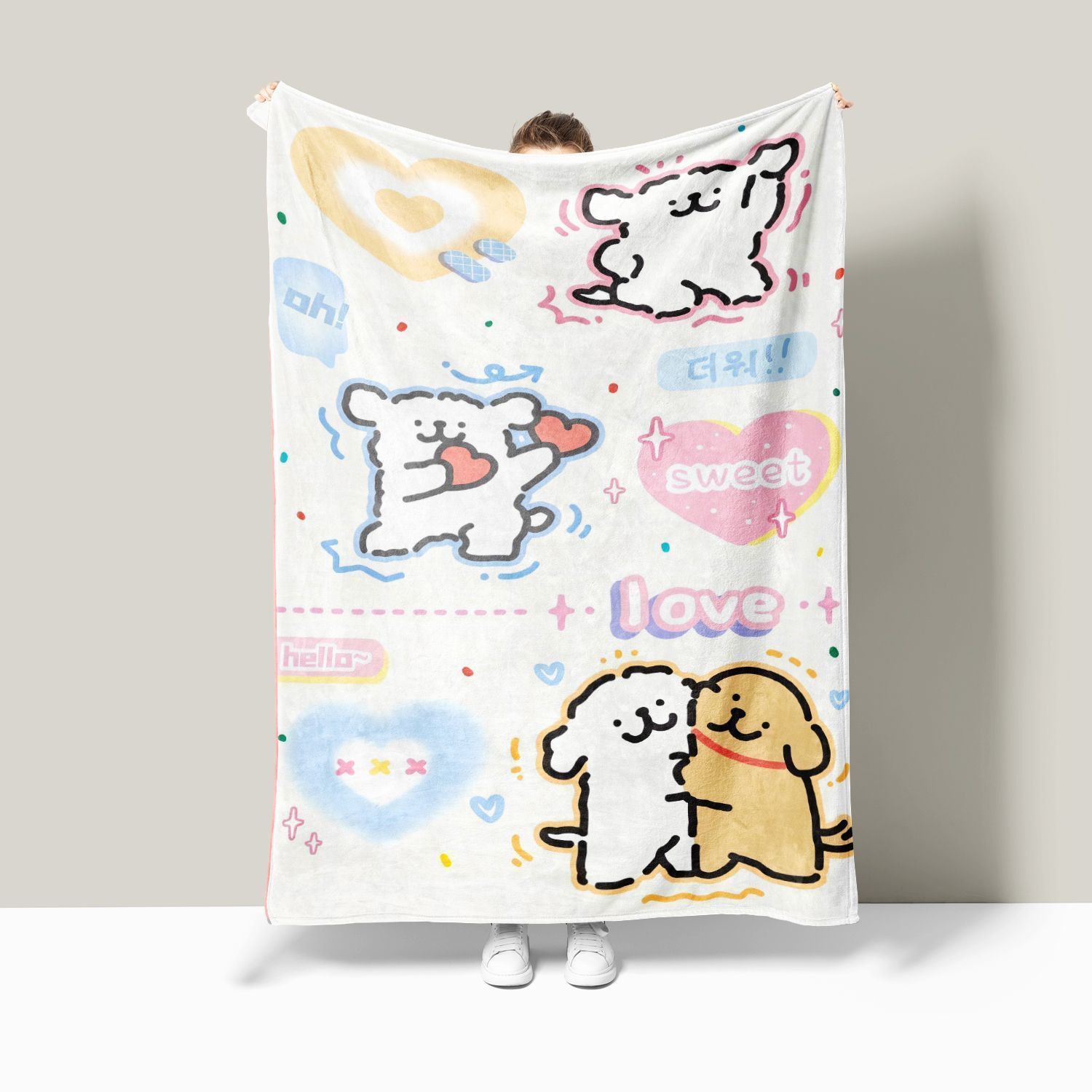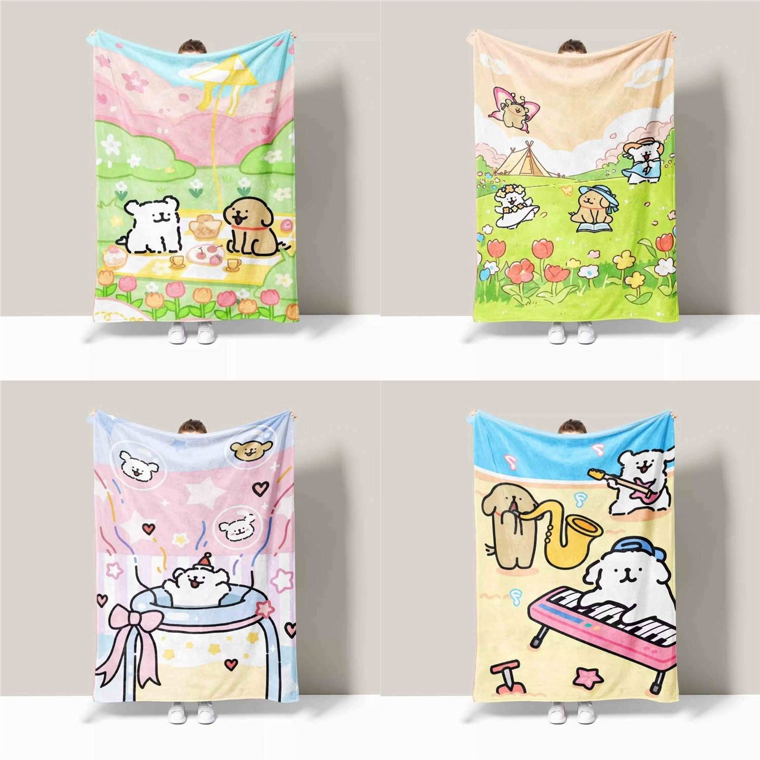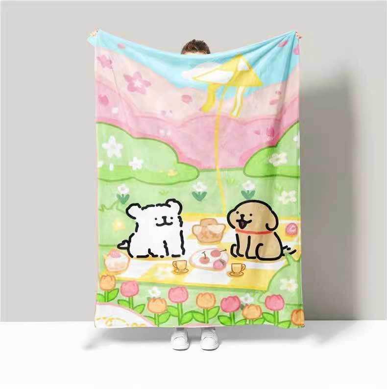 왕 싱렌 귀여운 라인 강아지 사계절 담요 담요 사무실 에어컨 담요스토어 가기