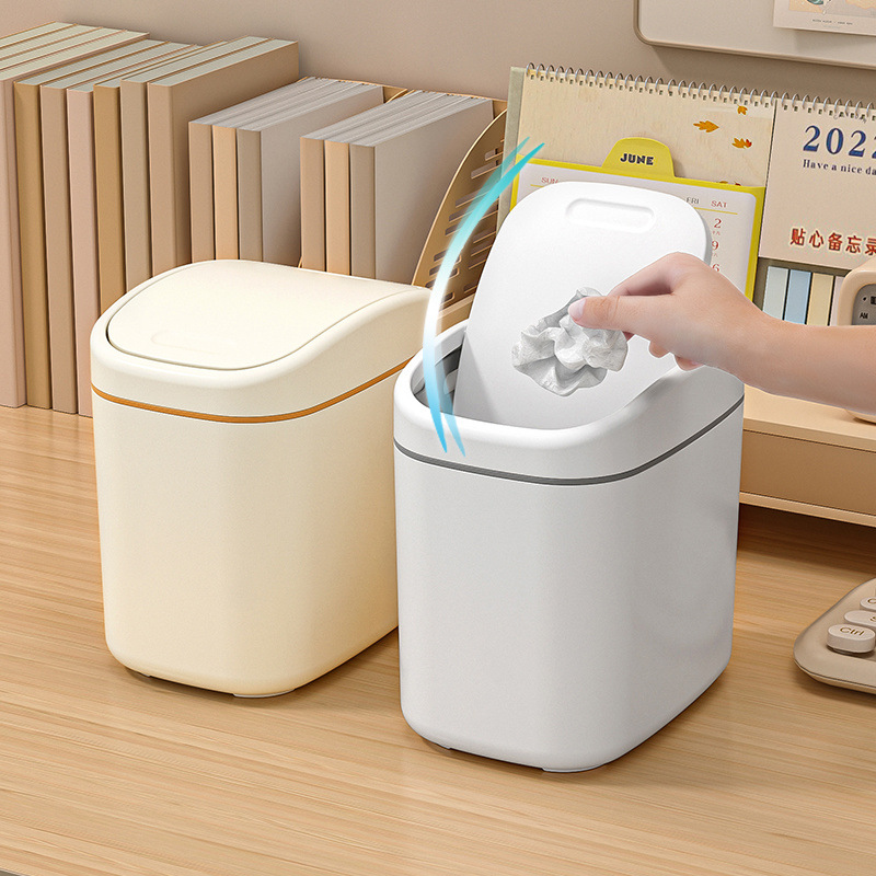간단한 로킹 뚜껑 데스크탑 휴지통 컬러 사무실 책상 휴지통 침실 책상 침대 옆 쓰레기통 자동차