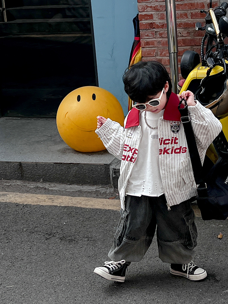 두꺼운 아동복 아동 알파벳 야구 유니폼 2025 봄 신작 남아 트렌디하고 멋진 한국식 재킷 봄, 가을 베이비