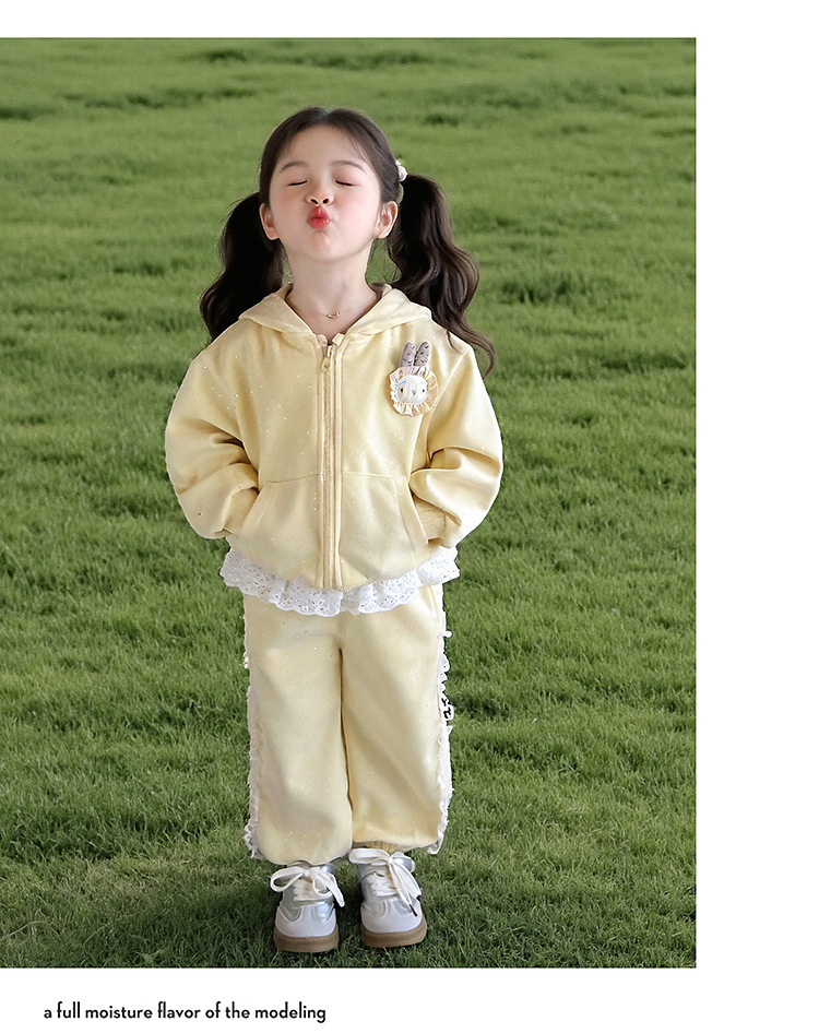 소녀 후드 세트 봄 2025 새로운 서양식 어린이 보물 레이스 캐주얼 착용 재킷 한국 투피스 세트스토어 가기