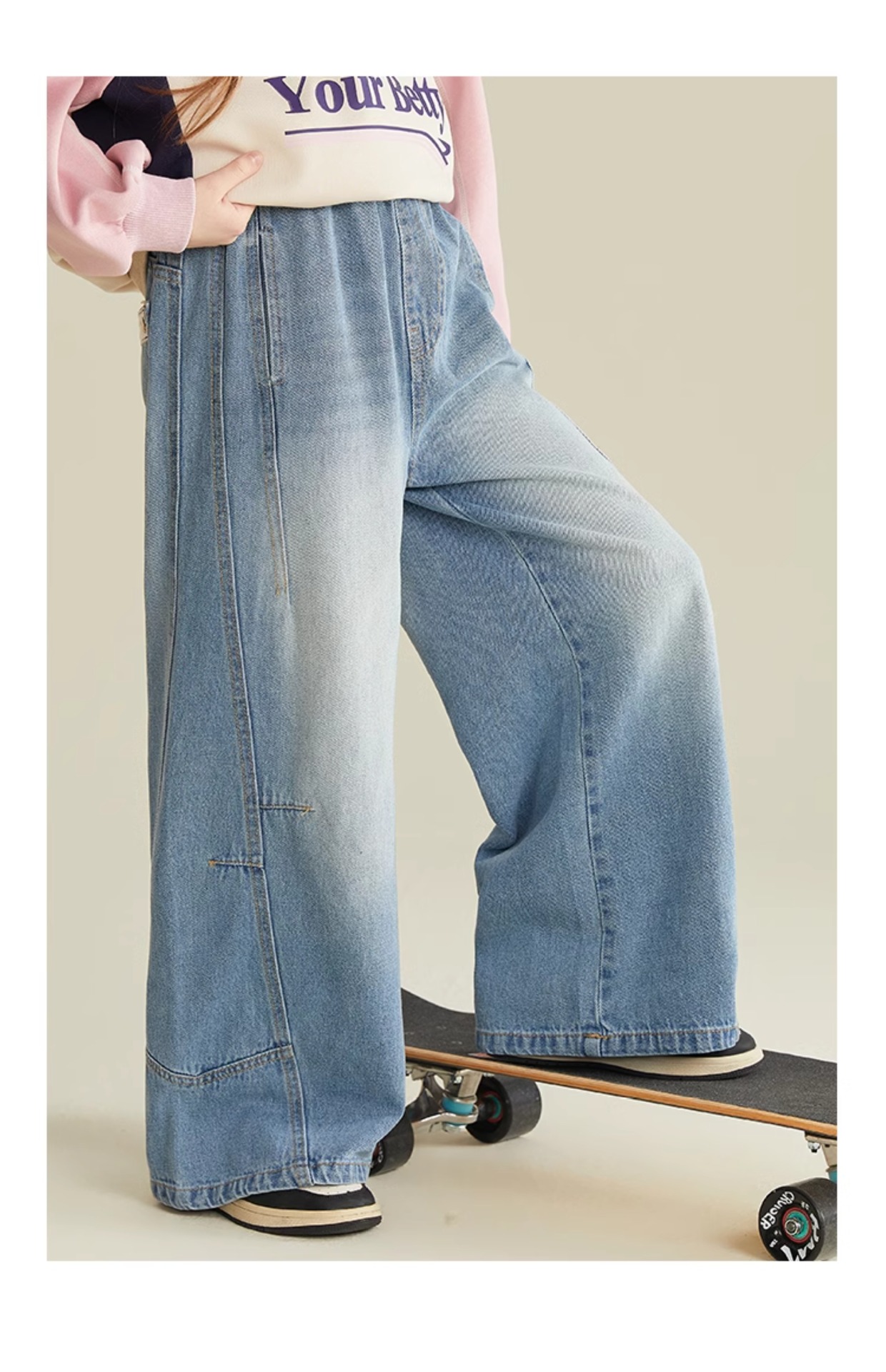 베티 아동복 소녀 유행 패션 캐주얼 청바지 2025 봄과 가을 어린이 느슨한 긴 바지