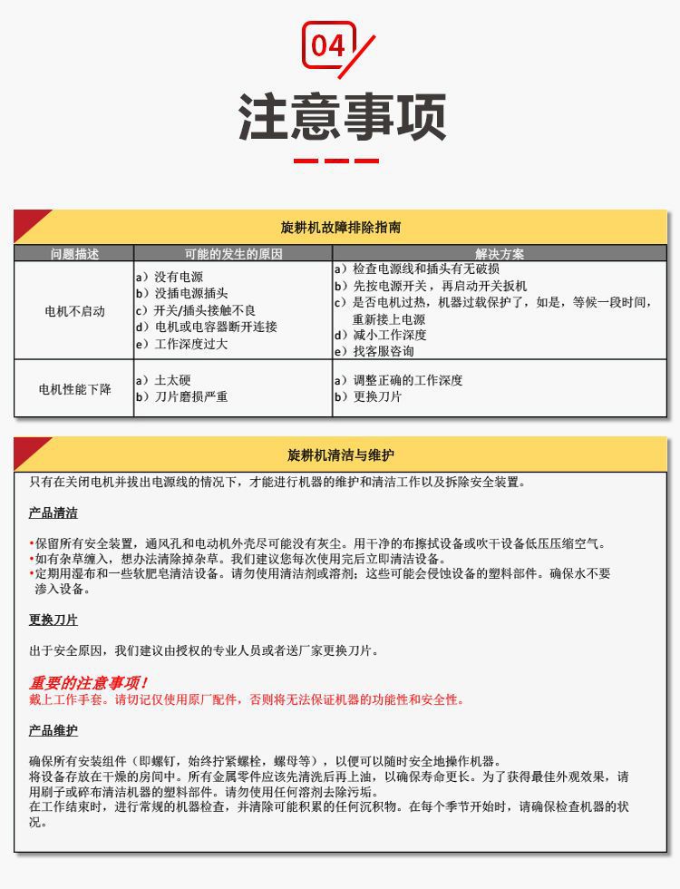• 플러그인 미세 경작기 1500W에는 0.35m 라인이 표준으로 제공됩니다.