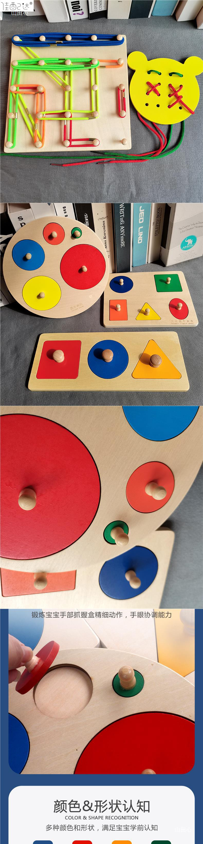 몬테소리 조기 교육 모양인지 장난감 색상 창조적 인 스레딩 보드 다양한 모양 퍼즐 유치원 코너 교육 원조스토어 가기