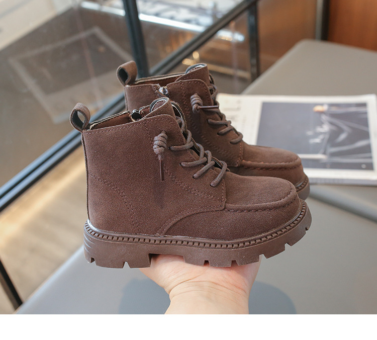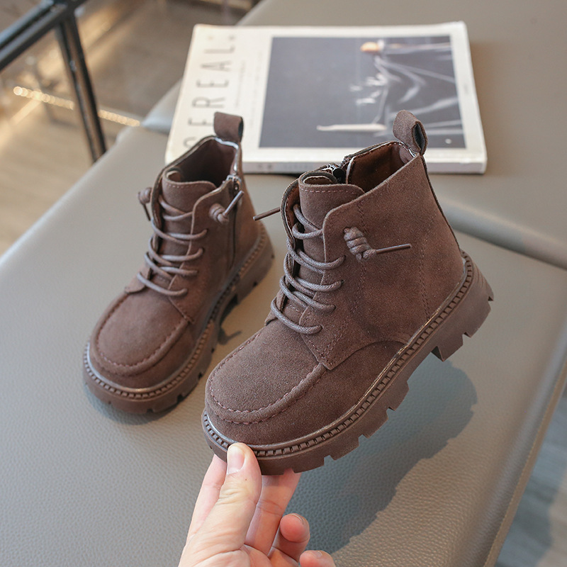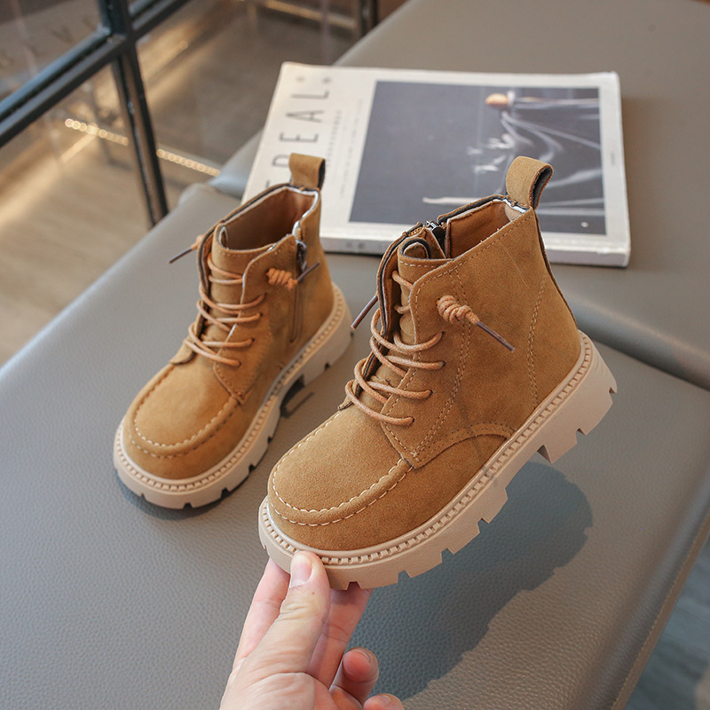새로운 어린이 소프트 가죽 쇼트 부츠 걸스 부츠 2025 봄 가을 소년 트렌디 한 싱글 부츠 대형 어린이 소프트 하단 마틴 부츠스토어 가기