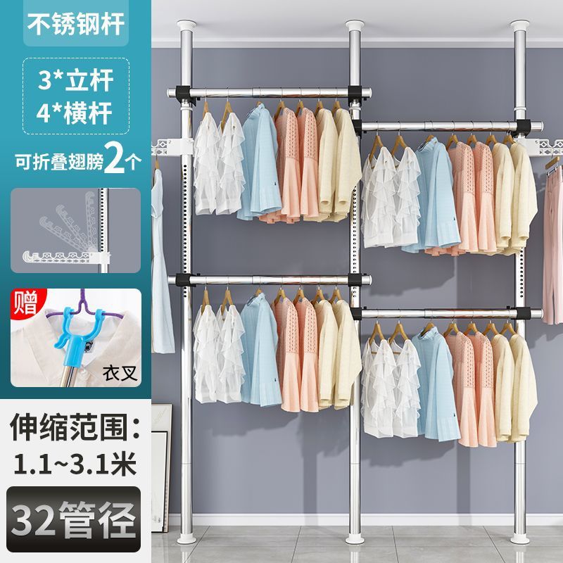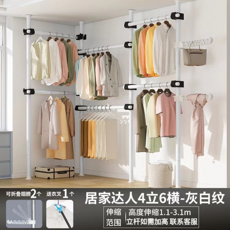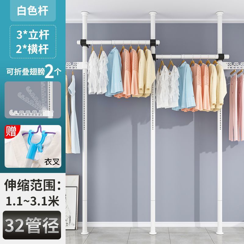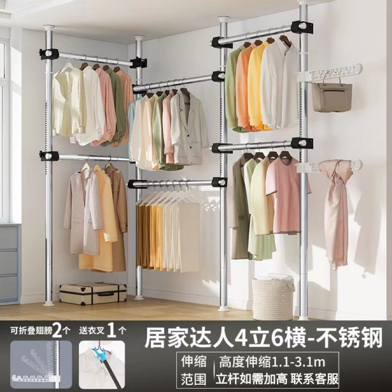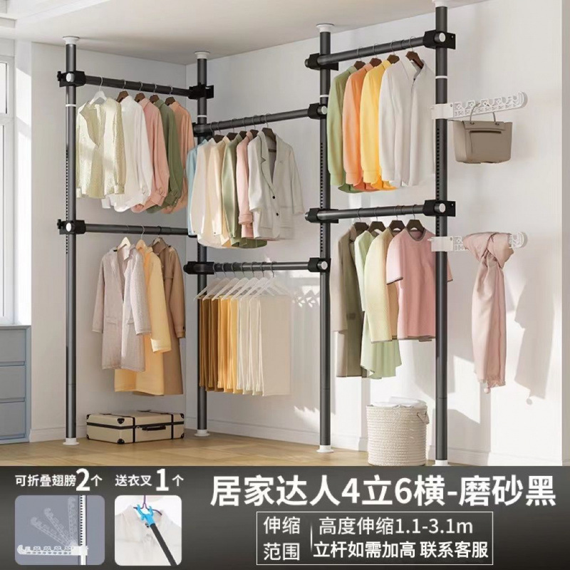 서있는 옷 옷걸이 막대 다기능 옷 옷걸이 바닥 DIY 간단한 접는 옷 랙 침실 발코니스토어 가기