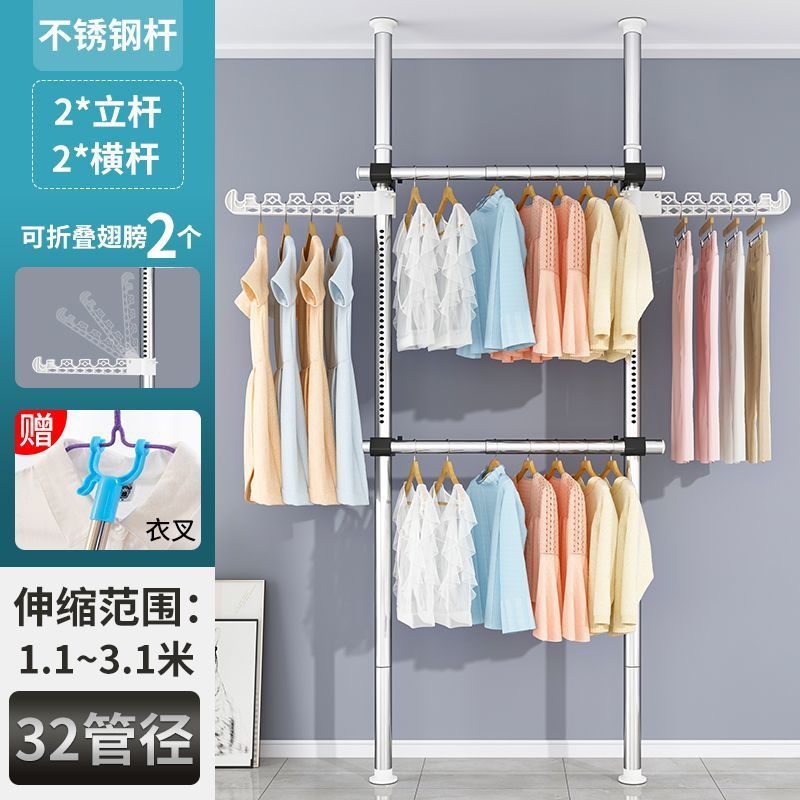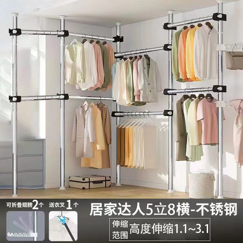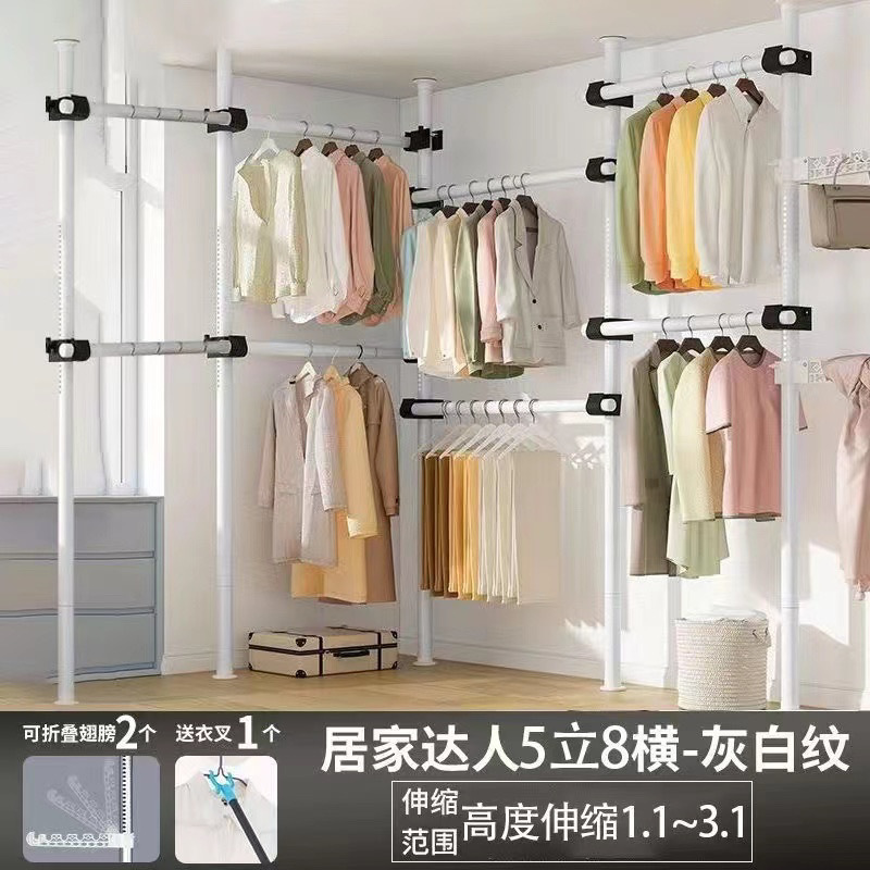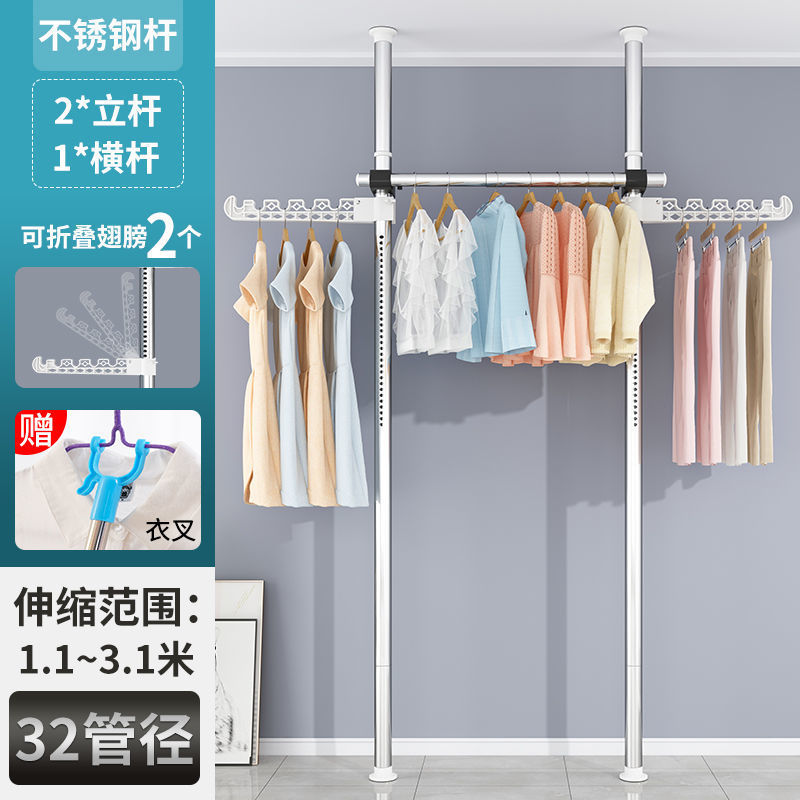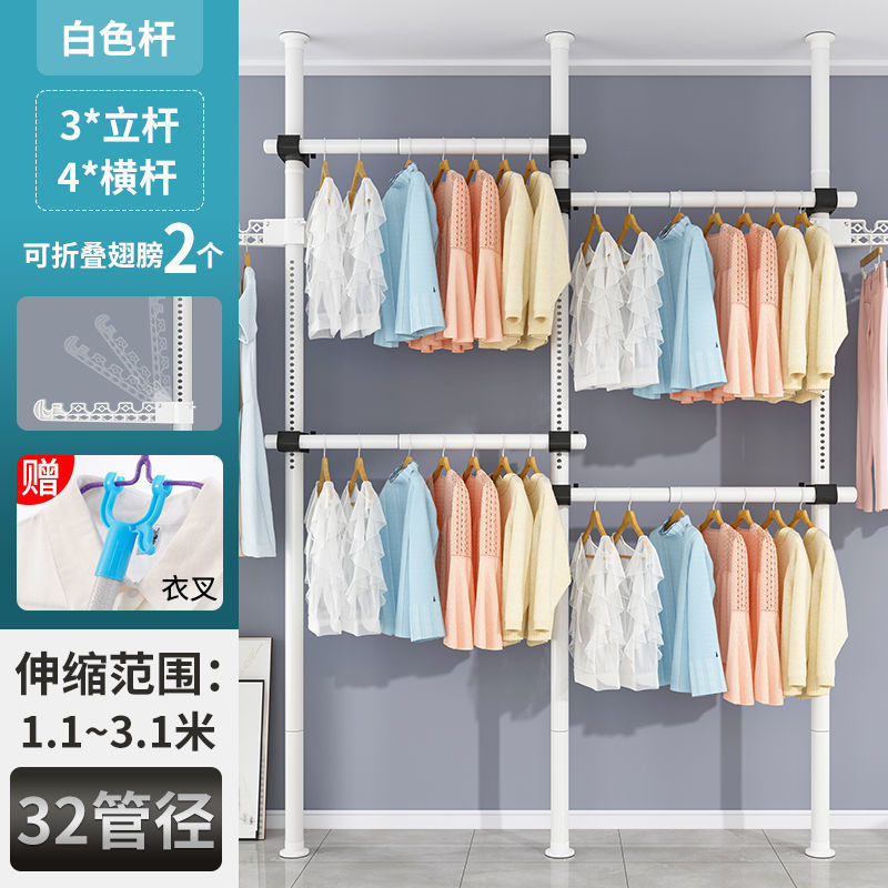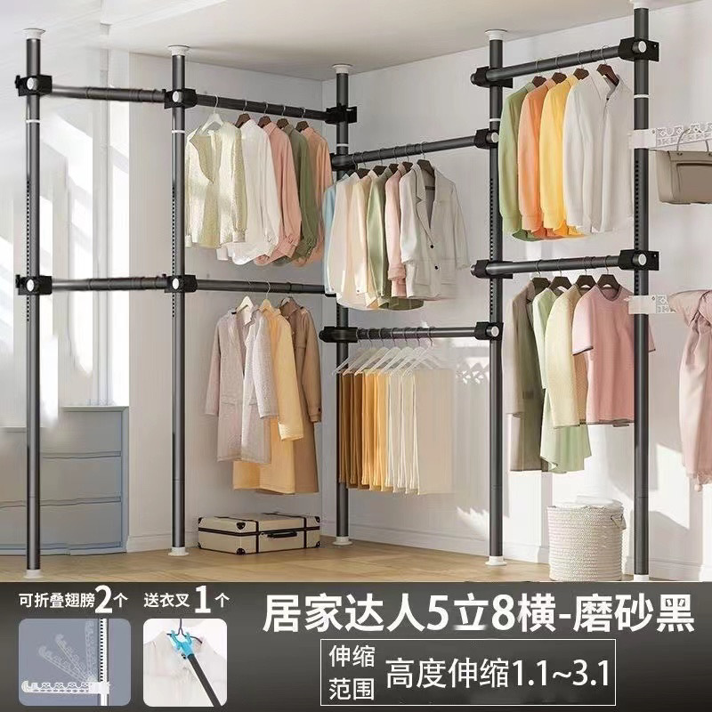 서있는 옷 옷걸이 막대 다기능 옷 옷걸이 바닥 DIY 간단한 접는 옷 랙 침실 발코니스토어 가기