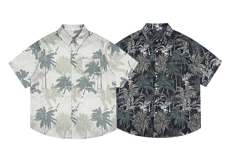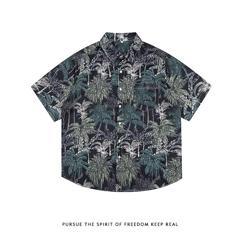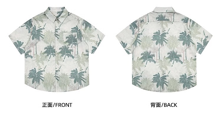 여름 섬 식물 테마 인쇄 반팔 셔츠 남자의 홍콩 스타일 패션 브랜드 느슨한 Bf 스타일 커플의 해변 꽃 셔츠스토어 가기