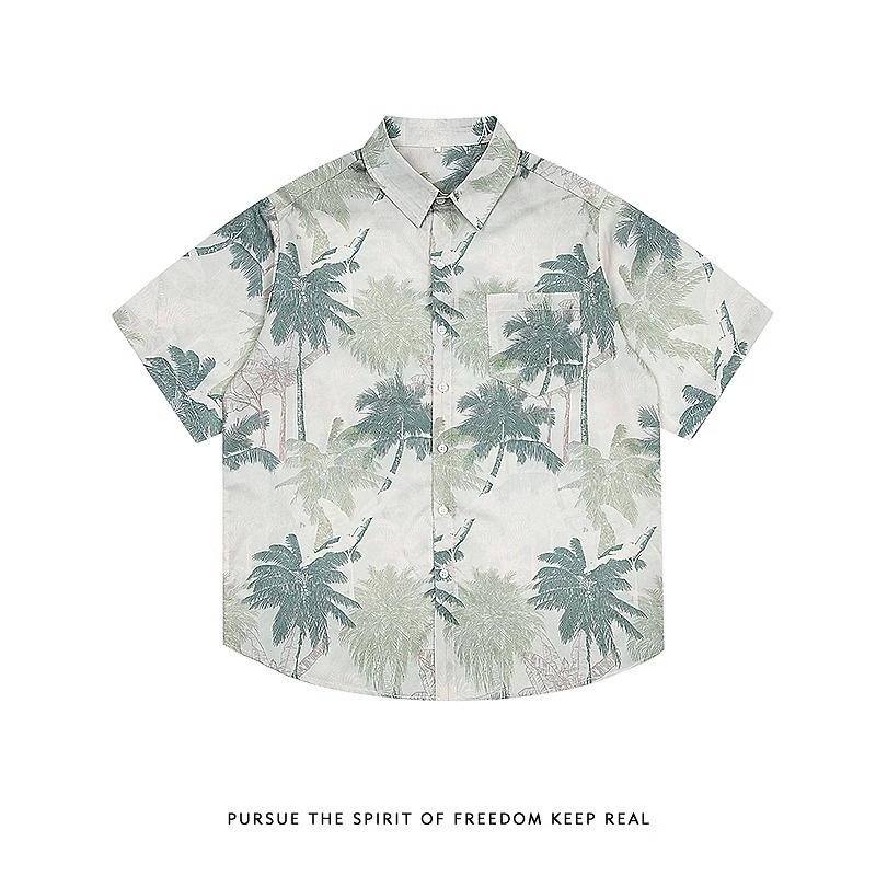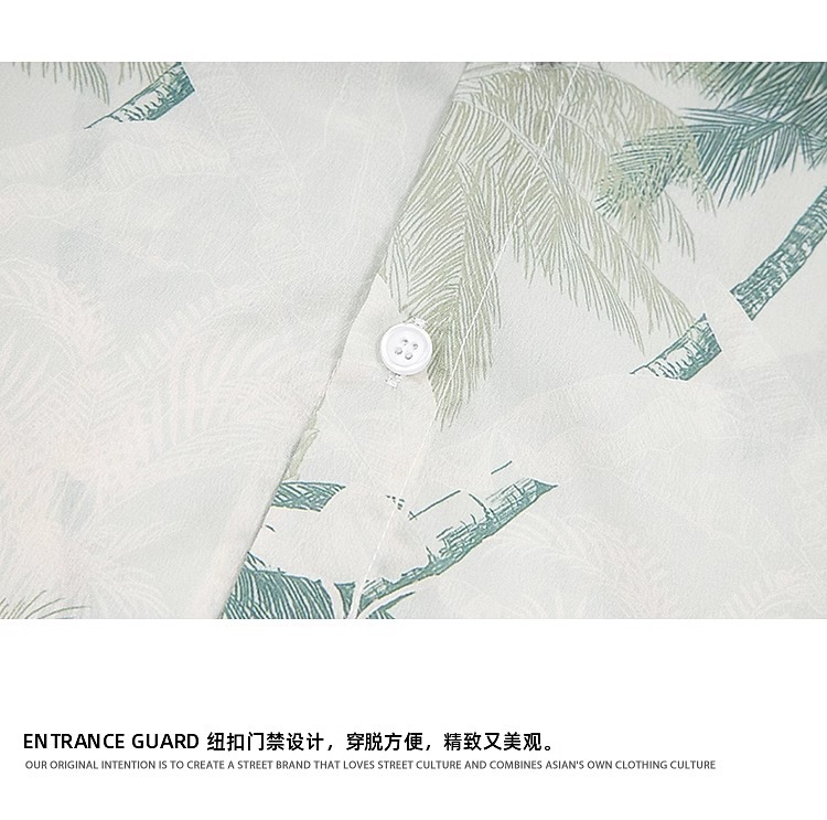 여름 섬 식물 테마 인쇄 반팔 셔츠 남자의 홍콩 스타일 패션 브랜드 느슨한 Bf 스타일 커플의 해변 꽃 셔츠