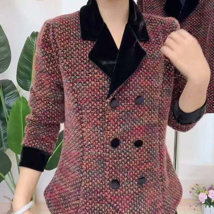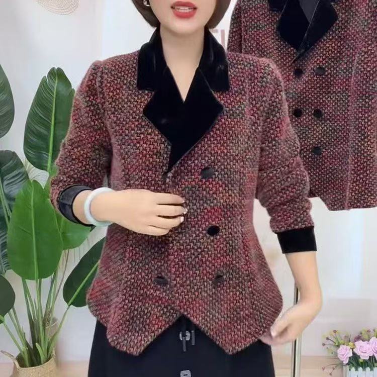 헤어 2025 년 봄과 가을 새로운 긴 소매 V-넥 기질 슬림 조커 작은 향기로운 바람 연령 감소 세트 재킷 여성