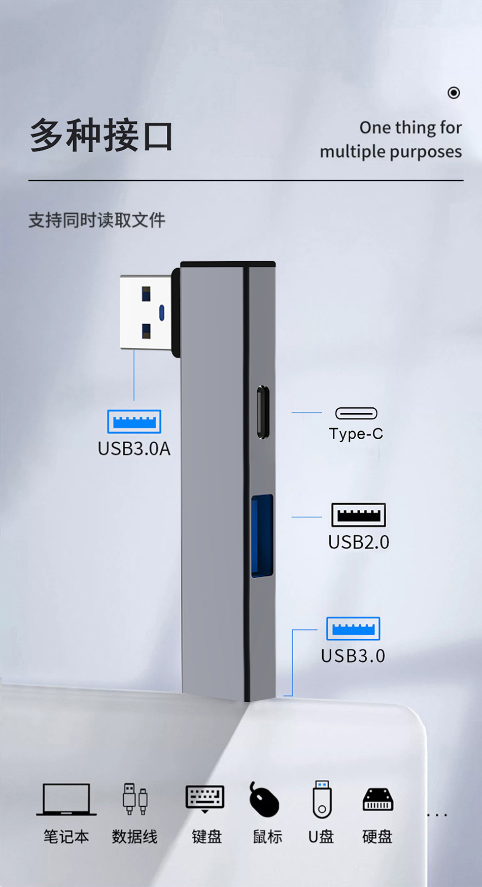 本扩展坞专为USB/Typec接口设备设计,扩展为以下功能接口: