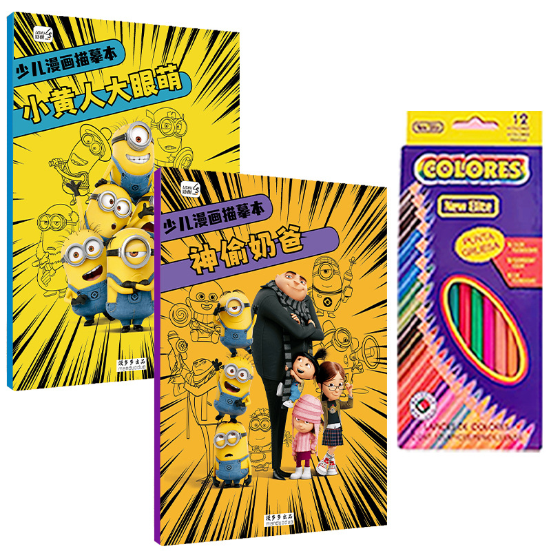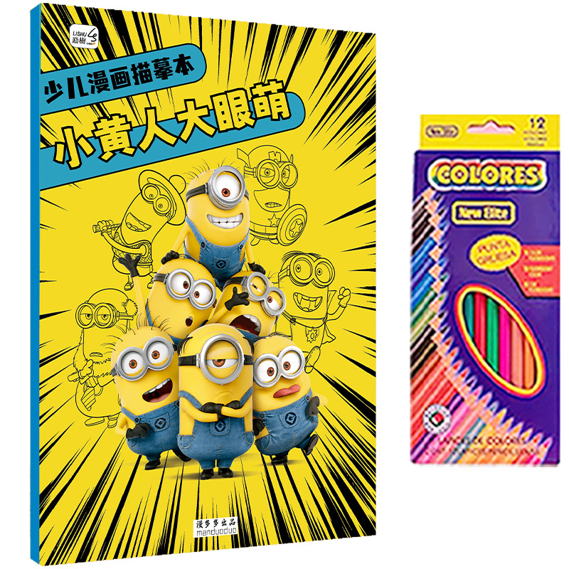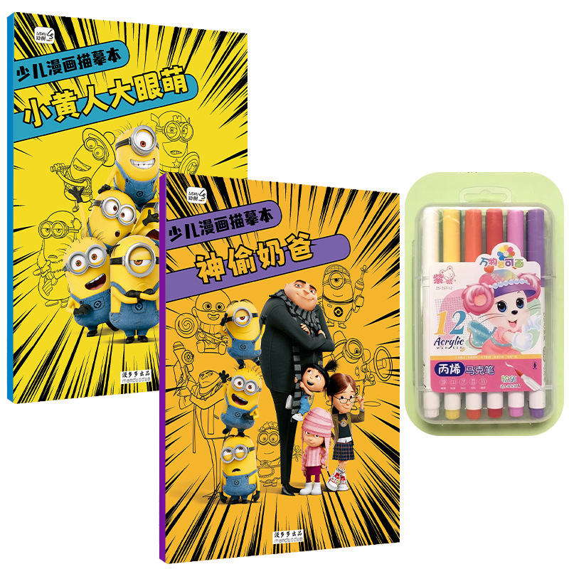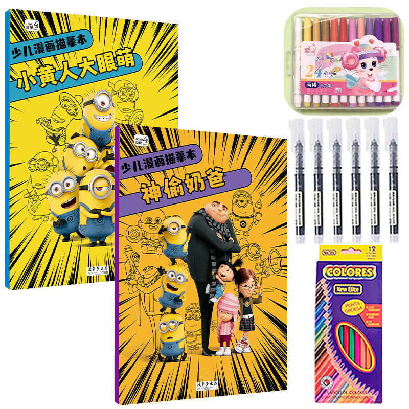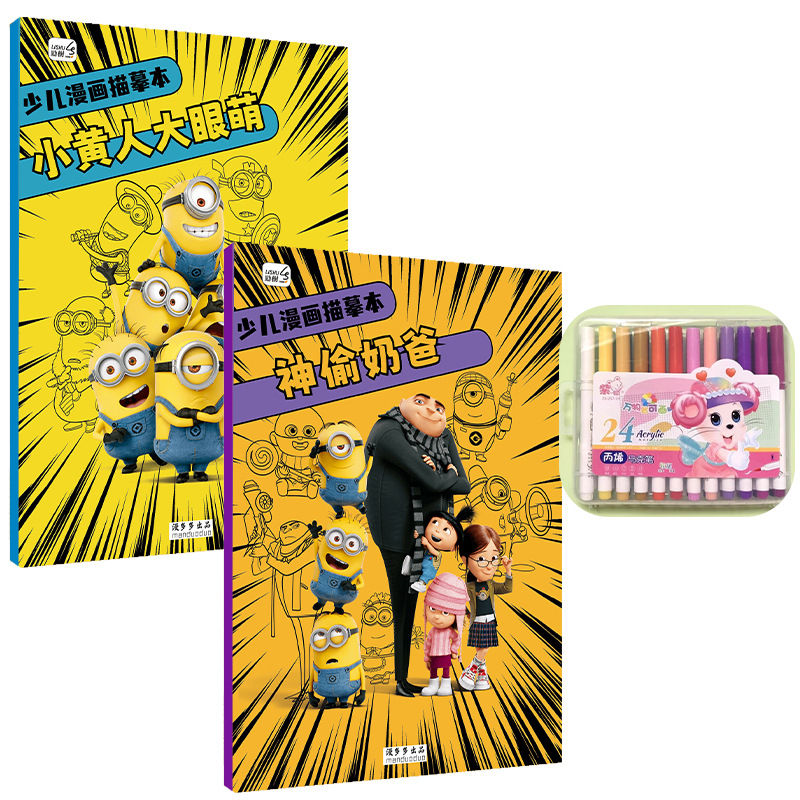 • 어린이 그림 만화 [작은 노란 큰 눈의 귀여운 + 도둑 아빠] + 선물 패키지 색연필 + 주사기 펜 + 24색 마커 펜
