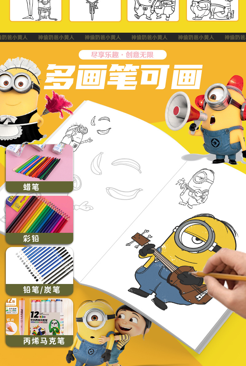 작은 노란색 남자 애니메이션 라인 그리기 책 초등학교 기본 초급 수준의 복사 그림책 컬러 책 어린이 손으로 그린 그림스토어 가기