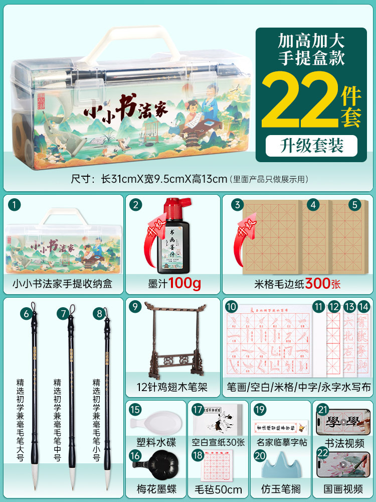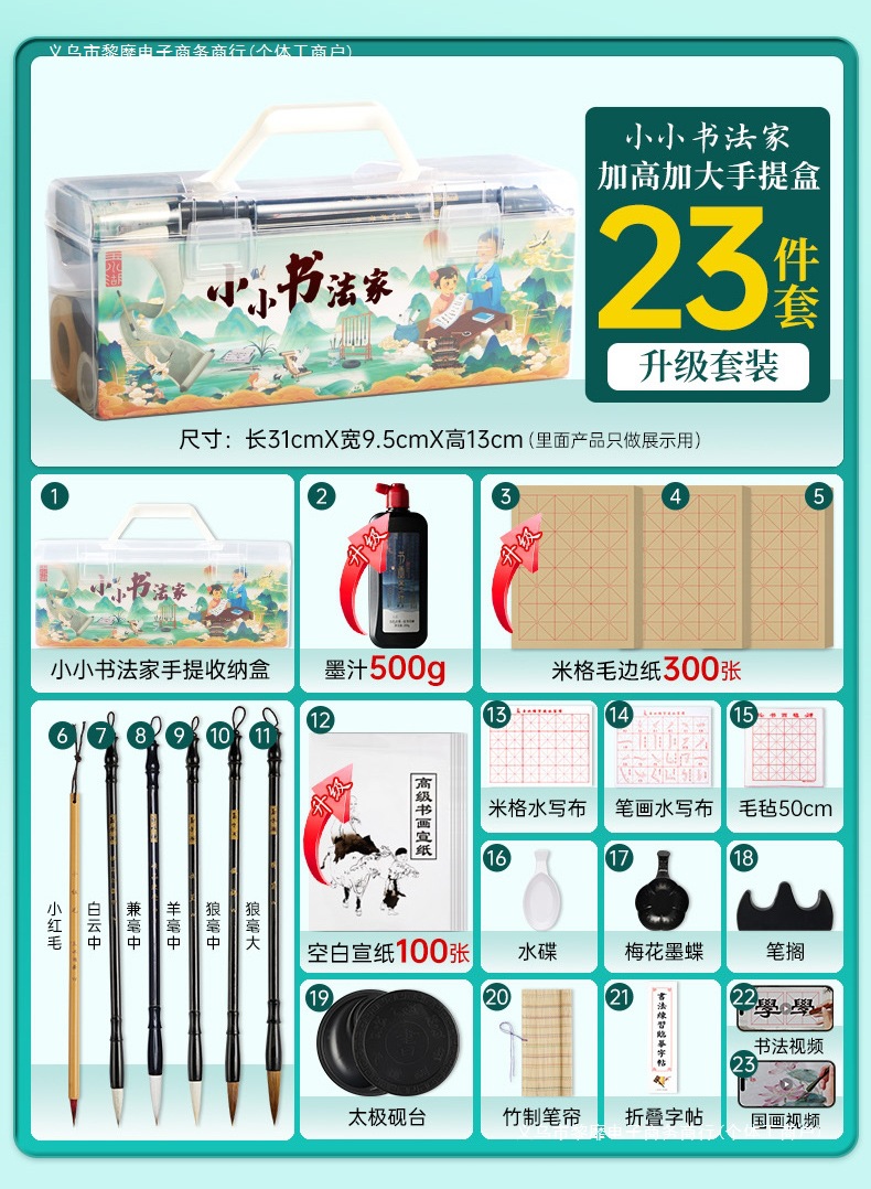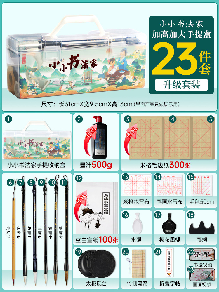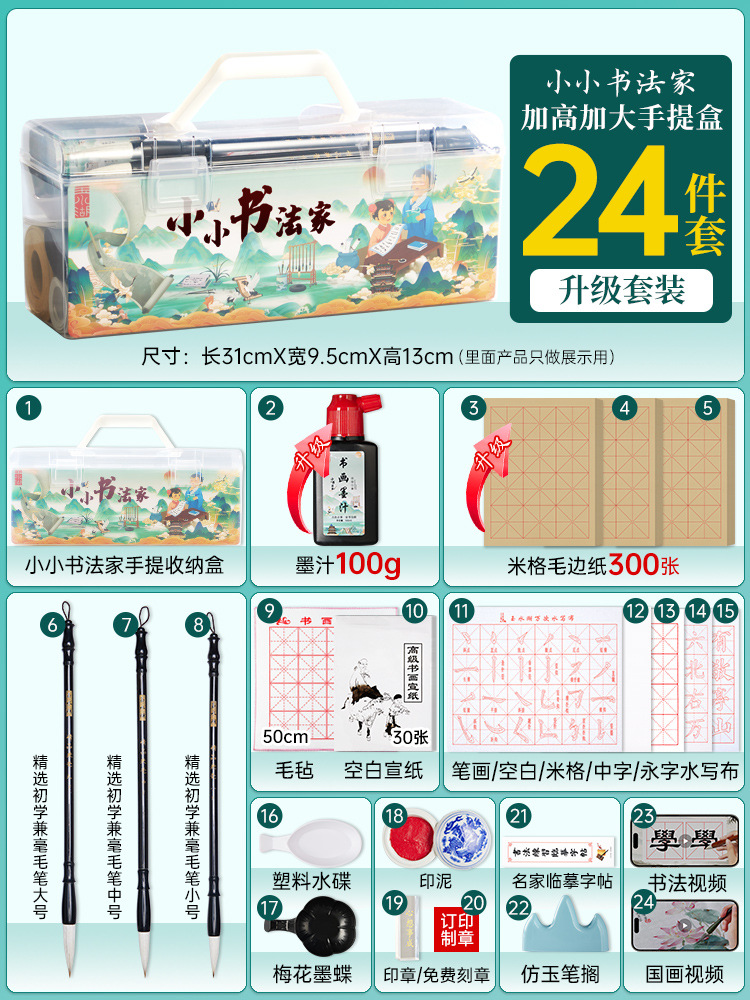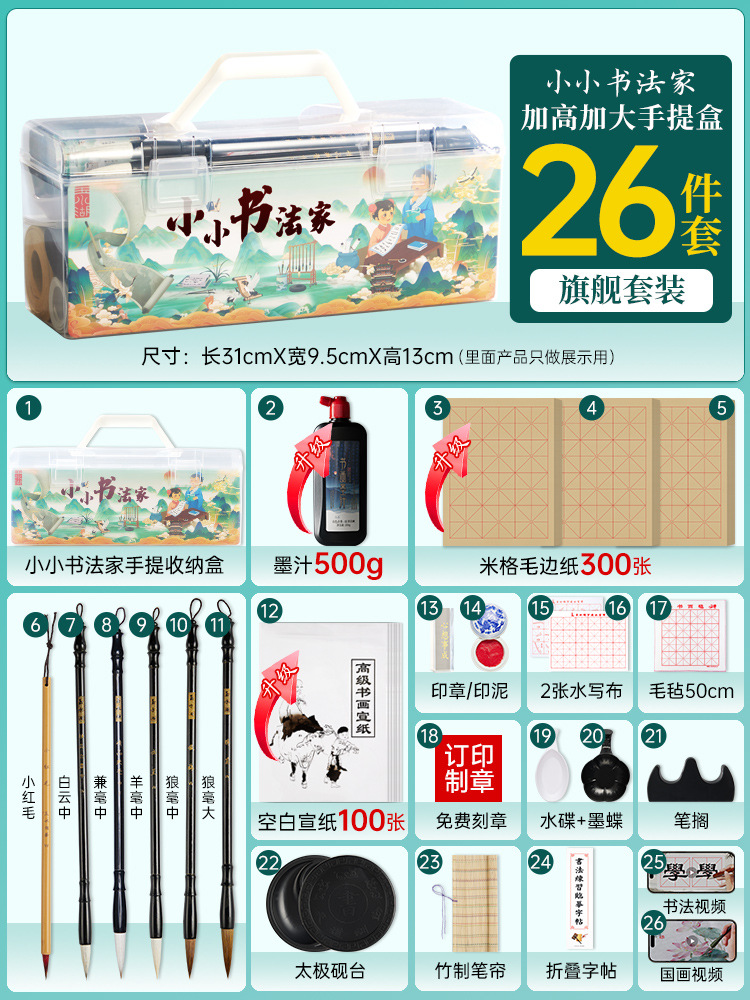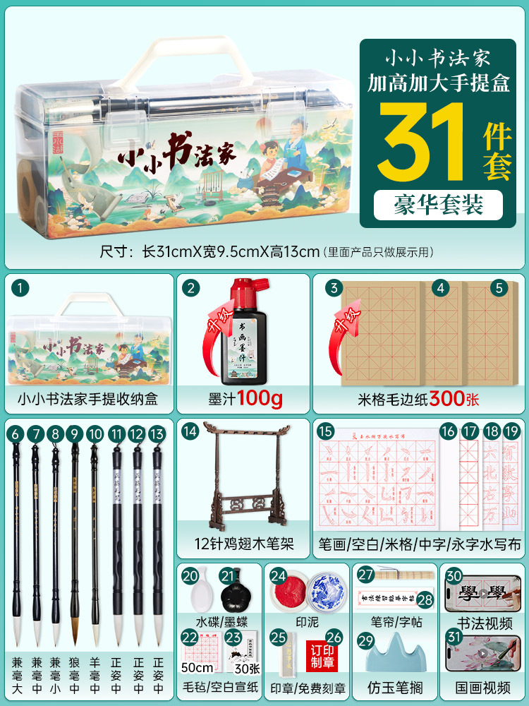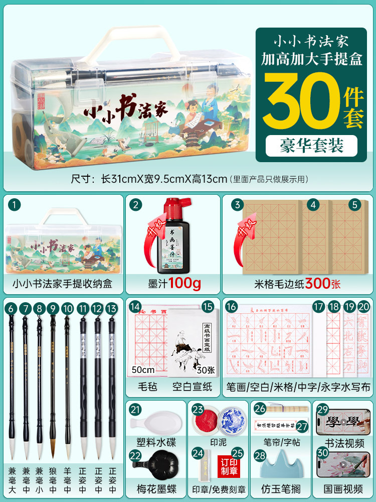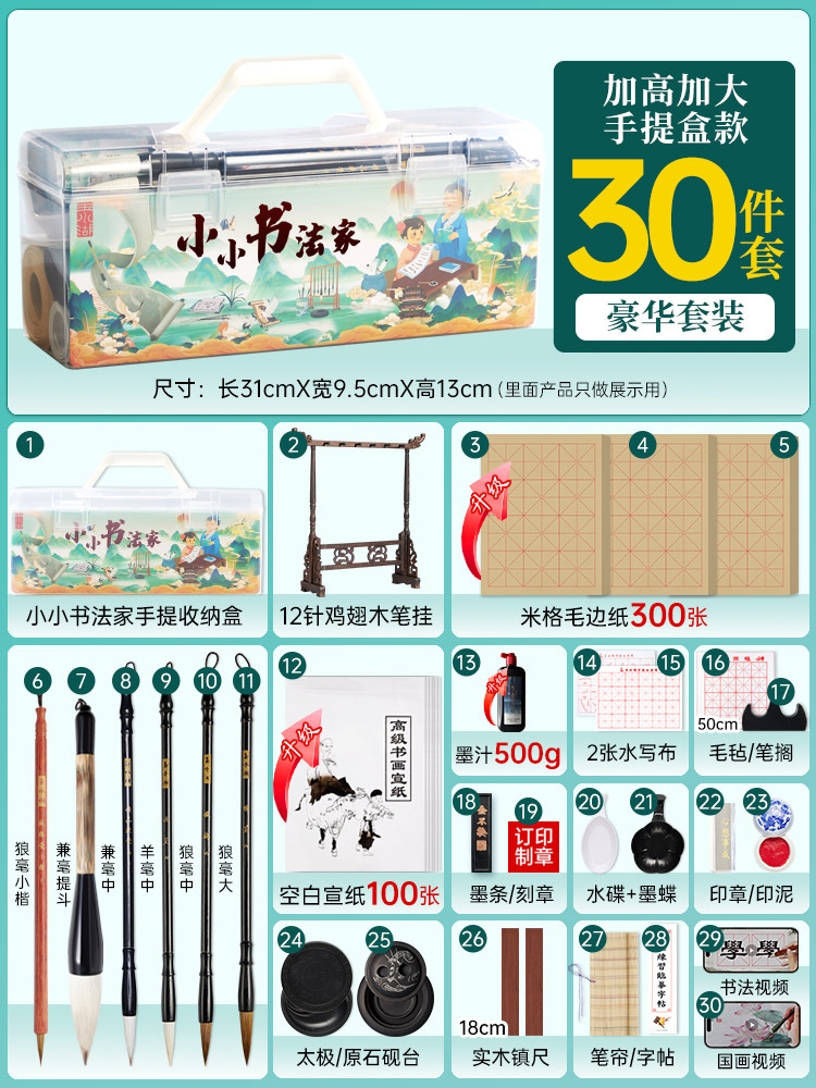 • [럭셔리 상위 액세서리·사보완성품] 30종 세트 [보관함 + 붓완성 세트 + 잉크 500g + 연습용지 400장 + 태극권 벼루 + 수전 실장