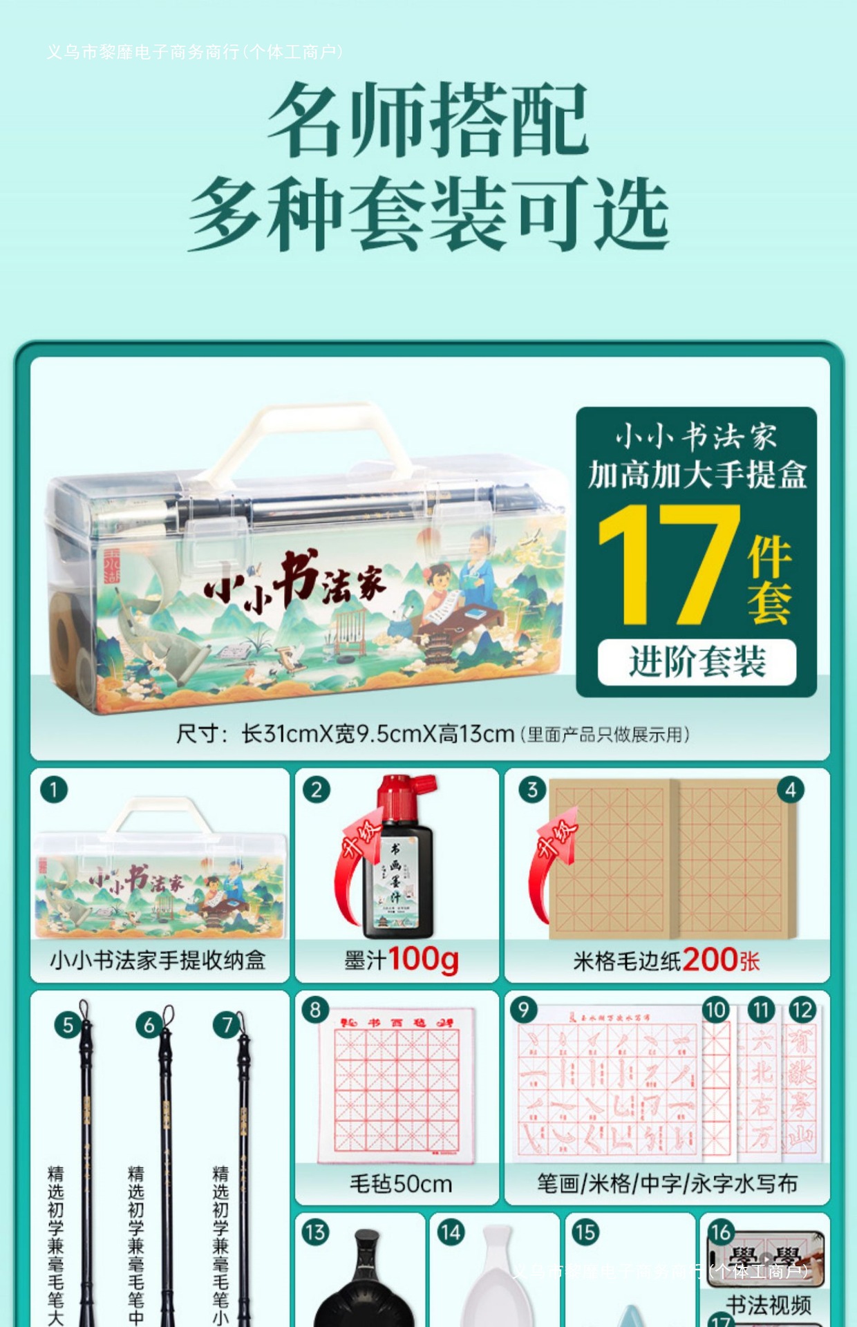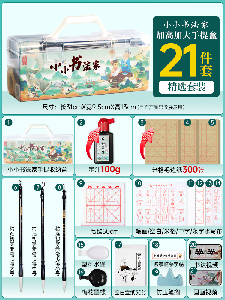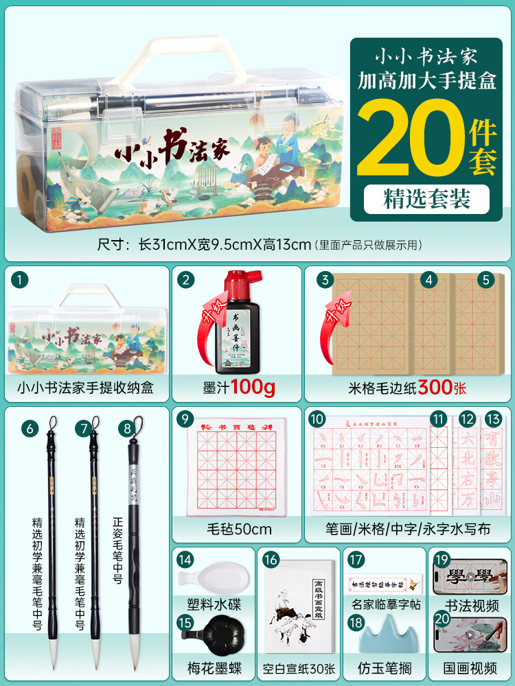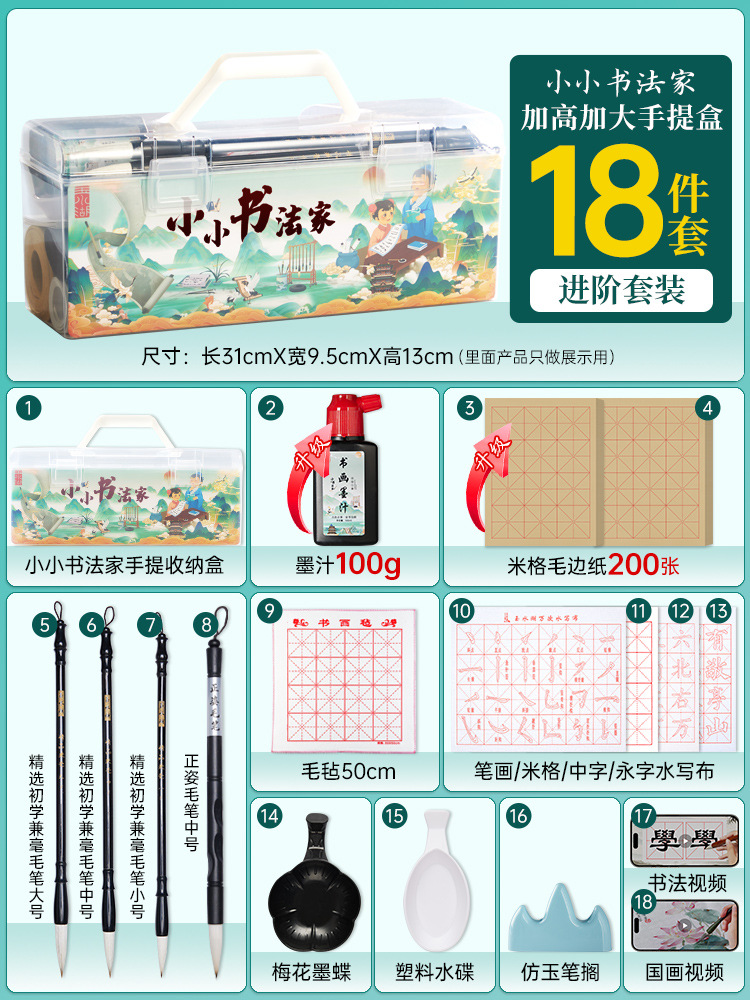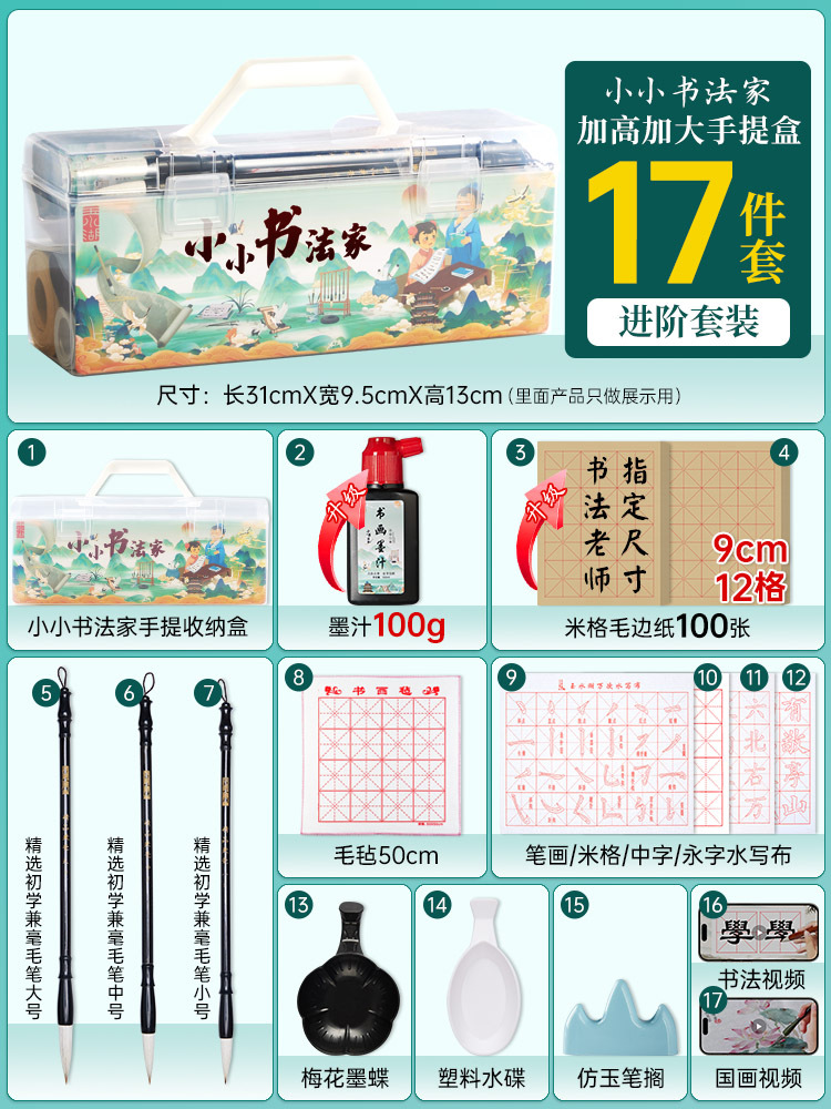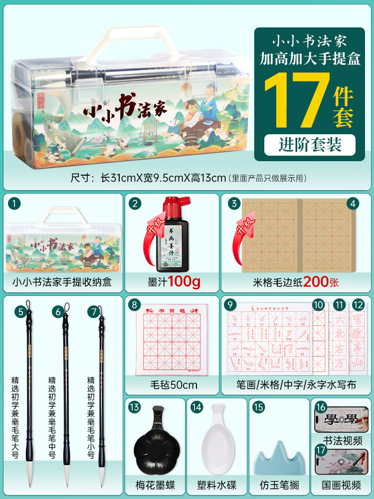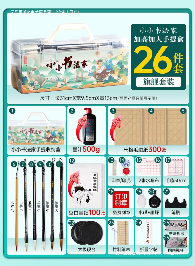 • [럭셔리 상위 액세서리·사보완성품] 30종 세트 [보관함 + 붓완성 세트 + 잉크 500g + 연습용지 400장 + 태극권 벼루 + 수전 실장
