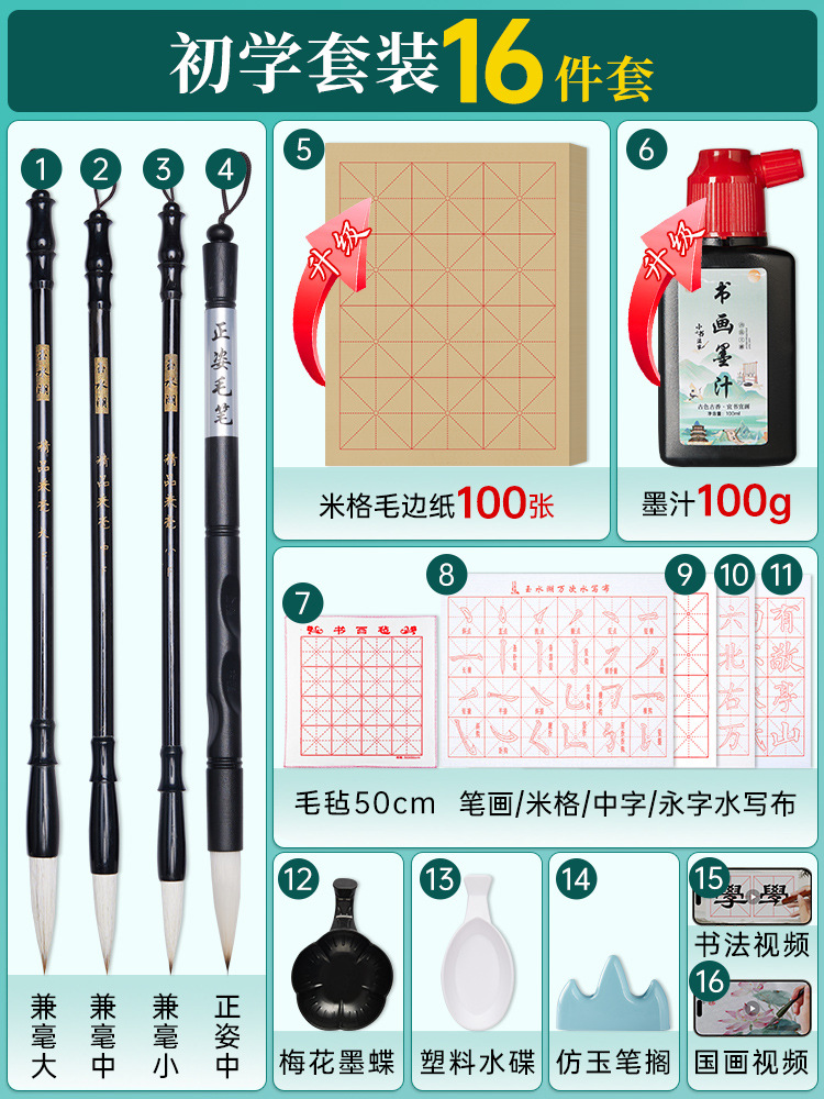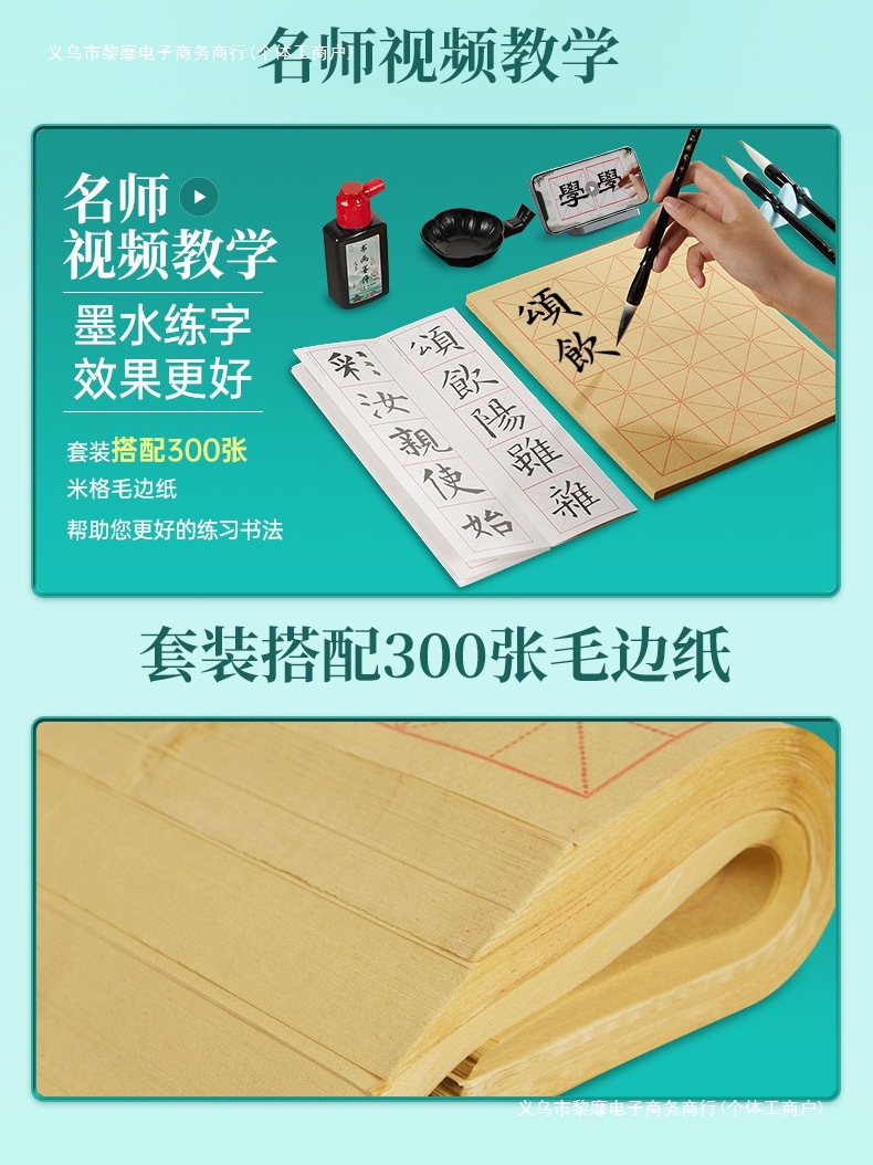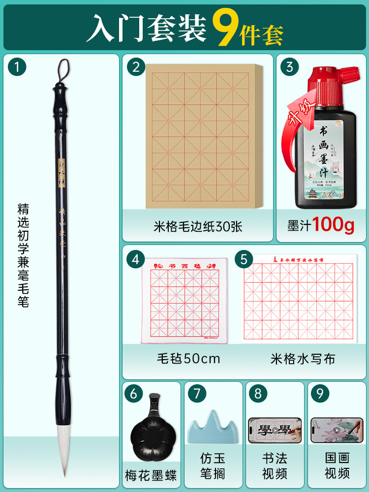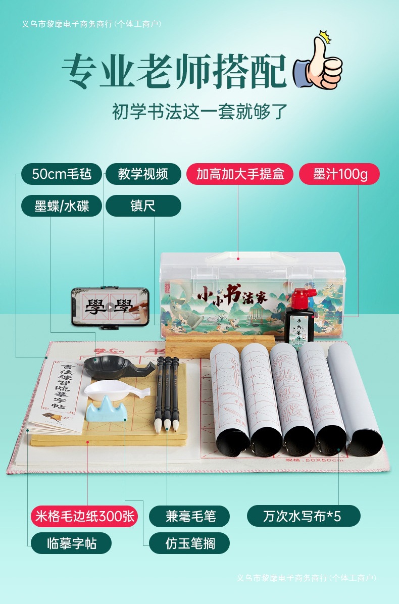 브러시 서예 초심자 세트 초등학생 브러시 캐릭터 쓰기 스터디 브러시, 잉크, 종이 및 잉크 스톤 전체 물 쓰기 세트의 네 가지 보물스토어 가기