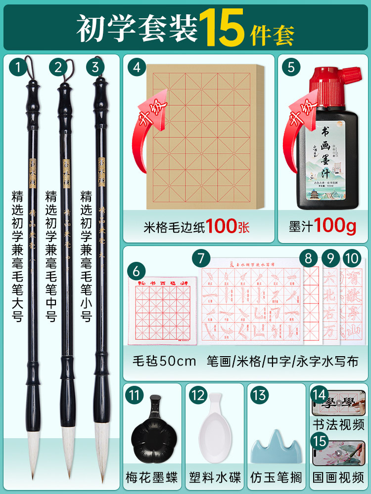 • 초보자를 위한 15종 세트 [브러시 3개 + 연습용지 100매]