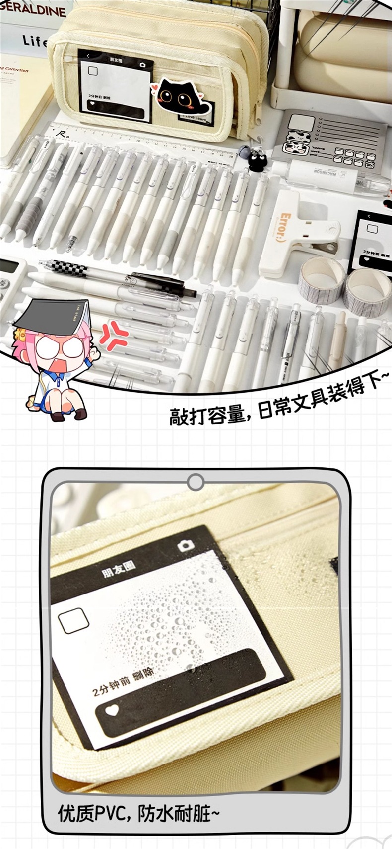 • [업그레이드 및 두꺼워짐] 흰색 필통 + 스티커 5개