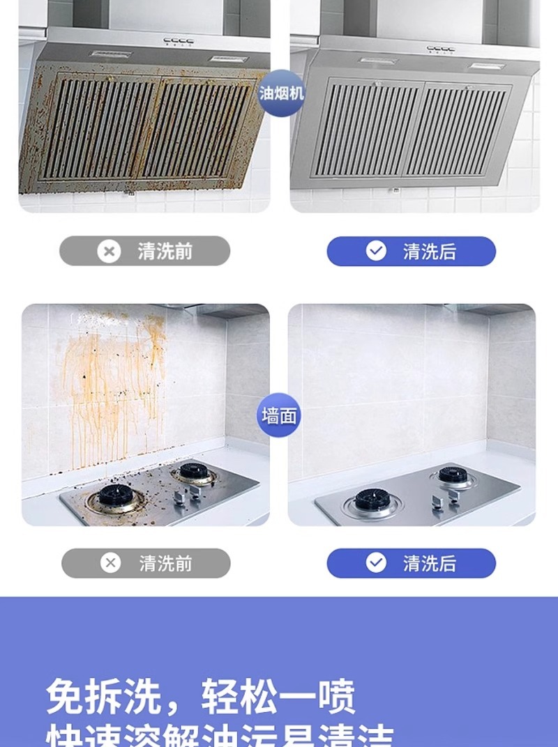 가정용 다기능 오일 클리너, 레인지 후드 클리너, 기름 제거, 주방 청소, 강력한 중유 거품 도매스토어 가기