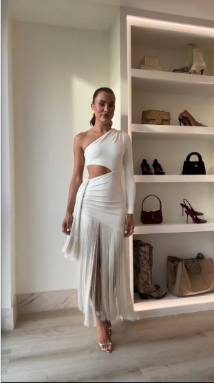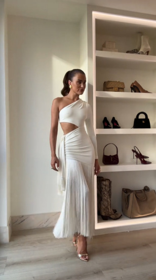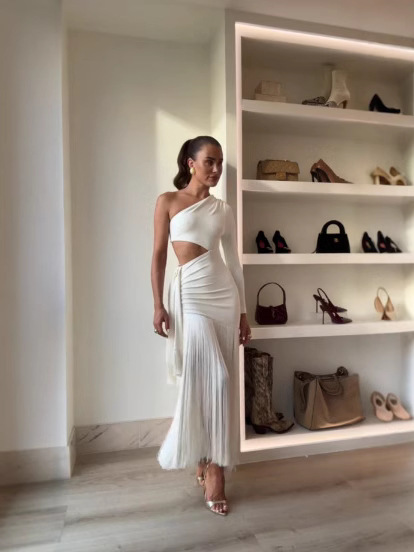 아마존 폭발 2025 여름 새로운 어깨 허리 여성 짧은 캐주얼 패션 흐름 빗 원피스