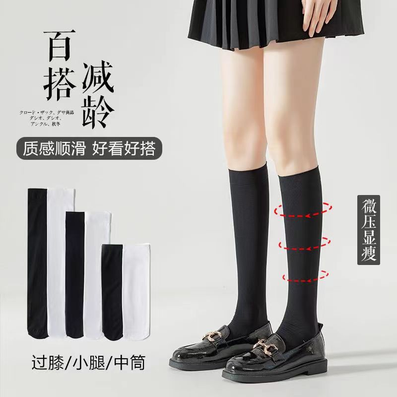 발 양말 일본 JK 양말 여성 여름 높은 양말 압력 얇은 다리 무릎 위에 순수한 검은 스타킹 아이스 하프 양말스토어 가기