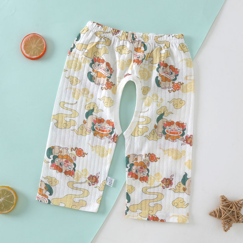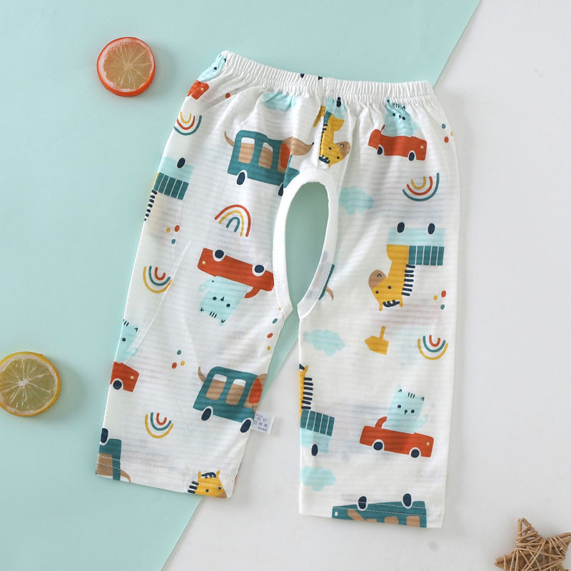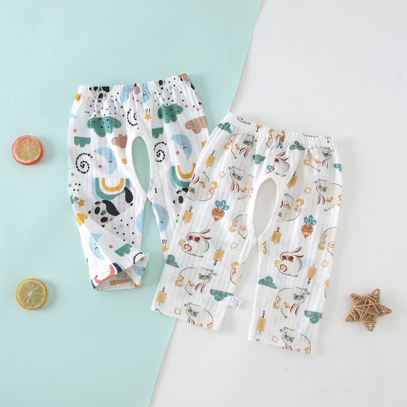 아기 순면 얇은 크로스 가랑이 오픈 가랑이 바지 아기 소년과 소녀 겉옷 7부 바지 반바지 여름 와이드스토어 가기