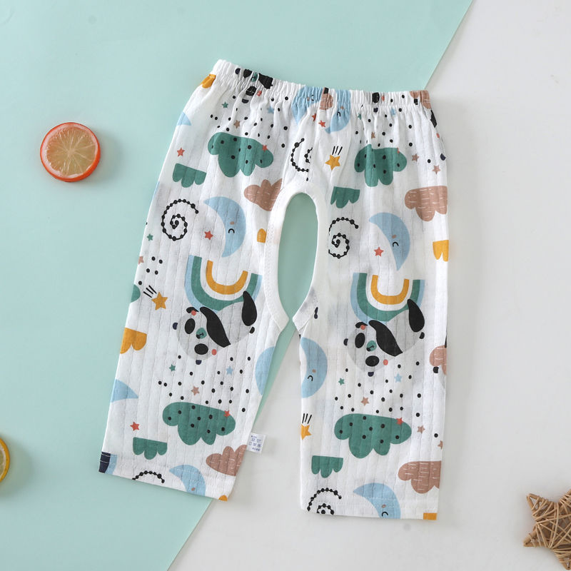 아기 순면 얇은 크로스 가랑이 오픈 가랑이 바지 아기 소년과 소녀 겉옷 7부 바지 반바지 여름 와이드