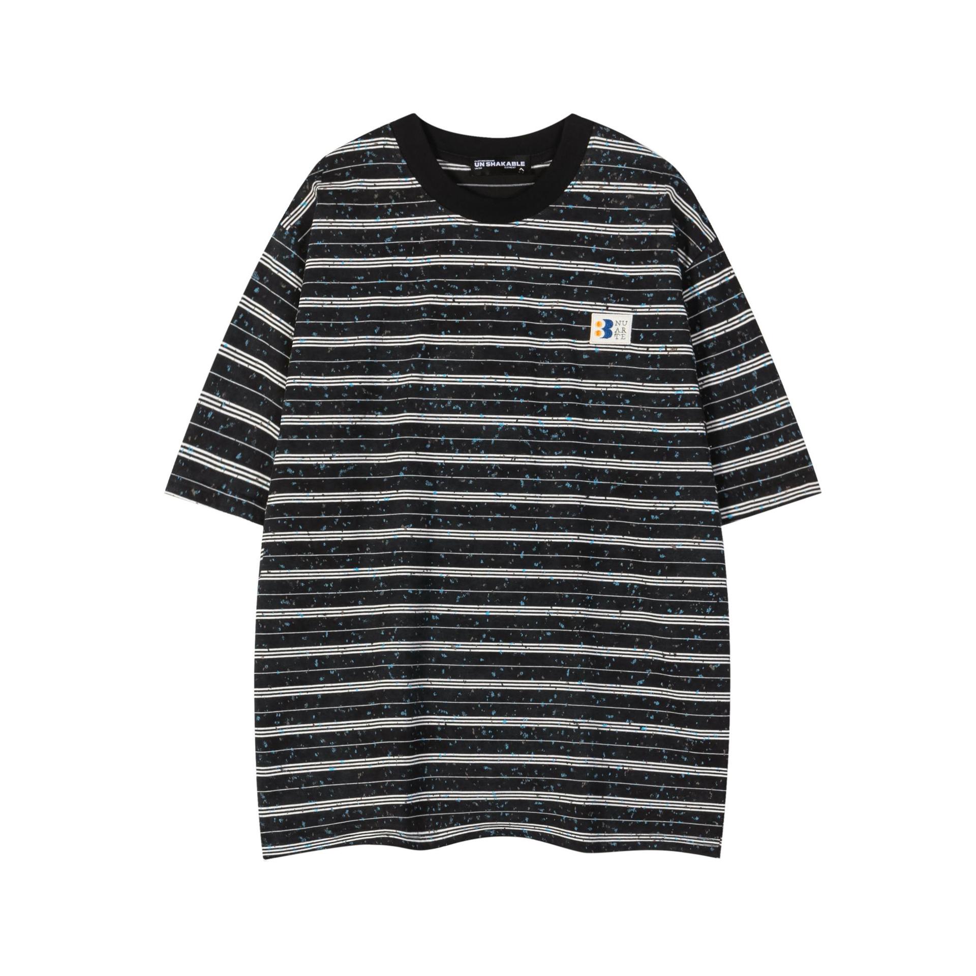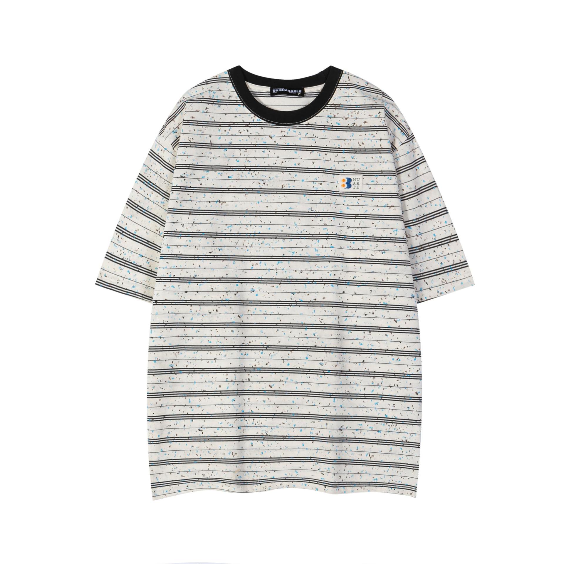 일본식 트렌디 브랜드 스트라이프 자수 디자인 반팔 티셔츠 남성과 여성의 오버 사이즈 캐주얼 올 매치 커플의 Ins Top스토어 가기