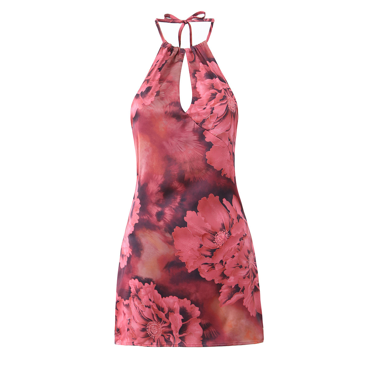 6661-유럽과 미국 스타일의 뜨거운 소녀 섹시한 백리스 패션 엉덩이 치마 여성 2025 새로운 슬림 목 원피스스토어 가기