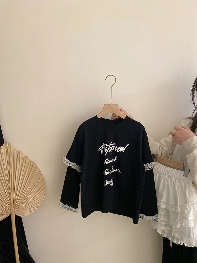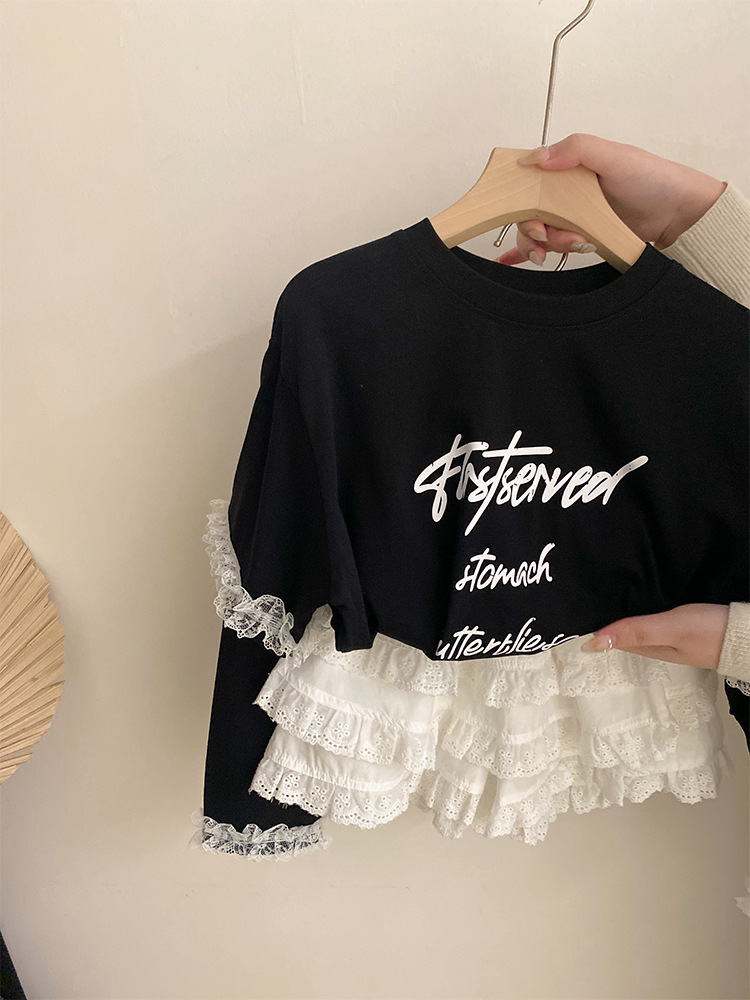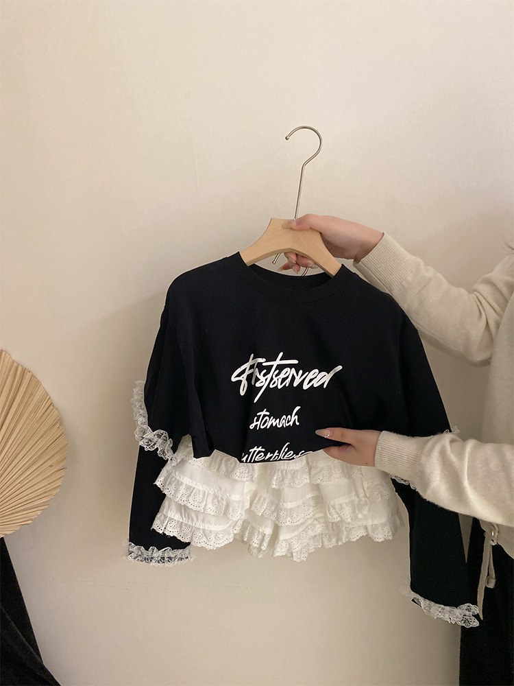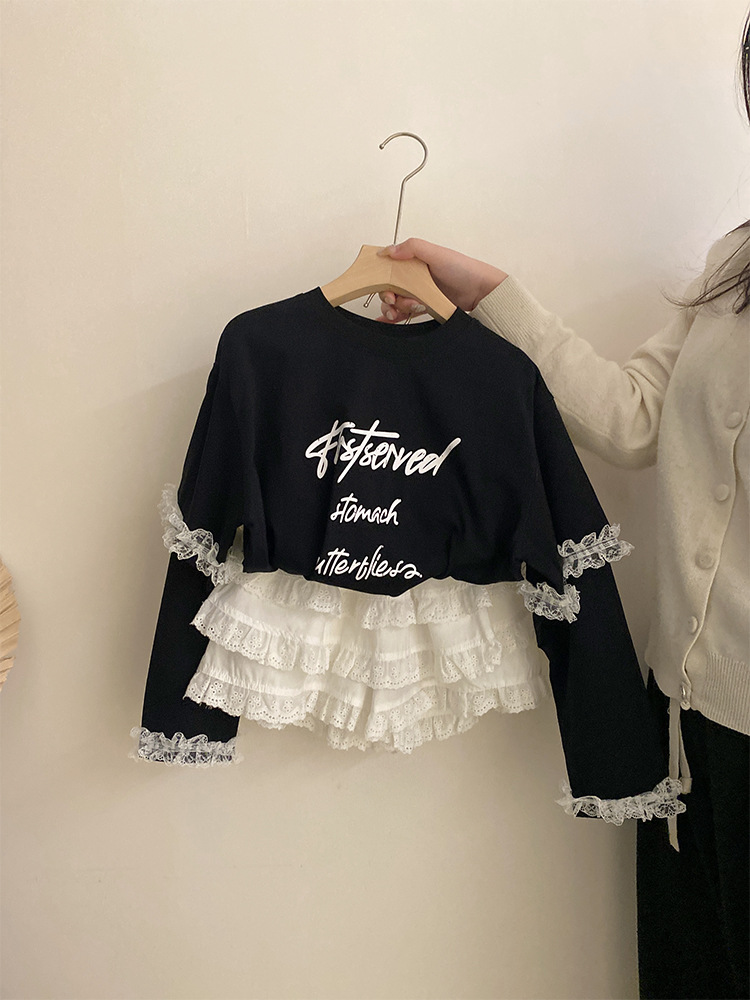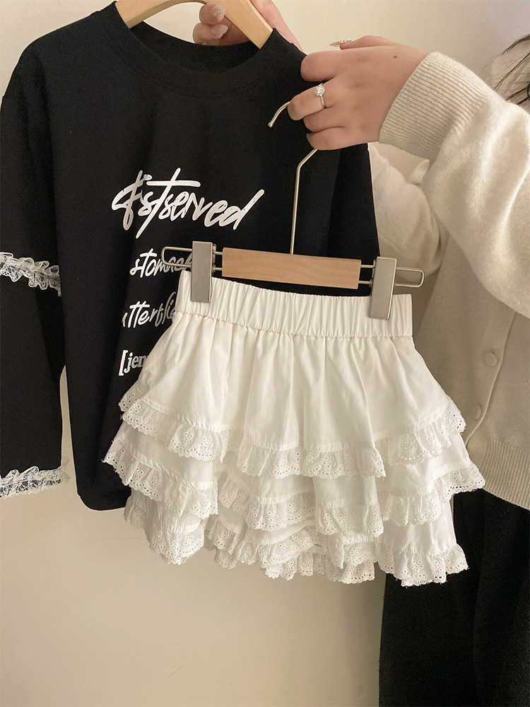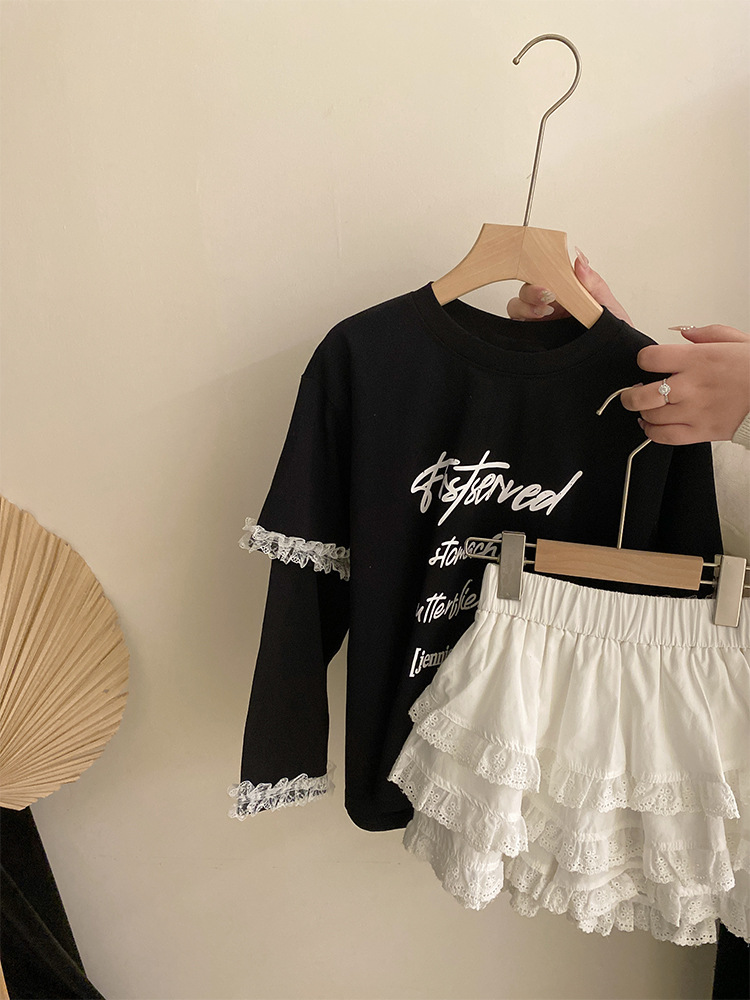소녀 2025 봄 한국 스타일 새로운 유행 편지 레이스 탑 귀여운 레이스 케이크 스커트 투피스 세트