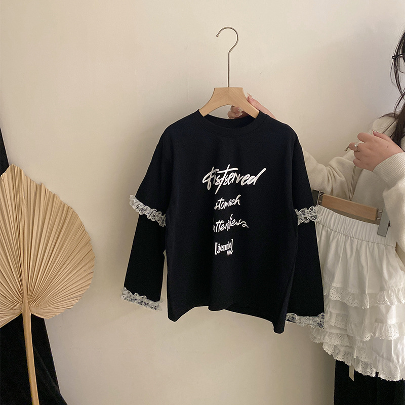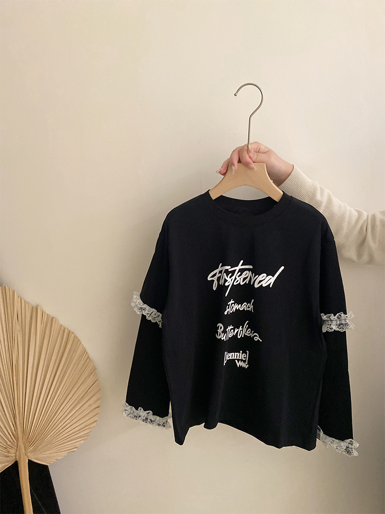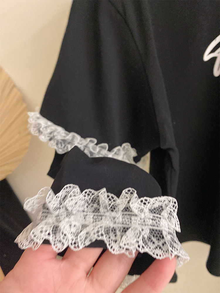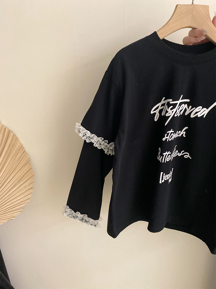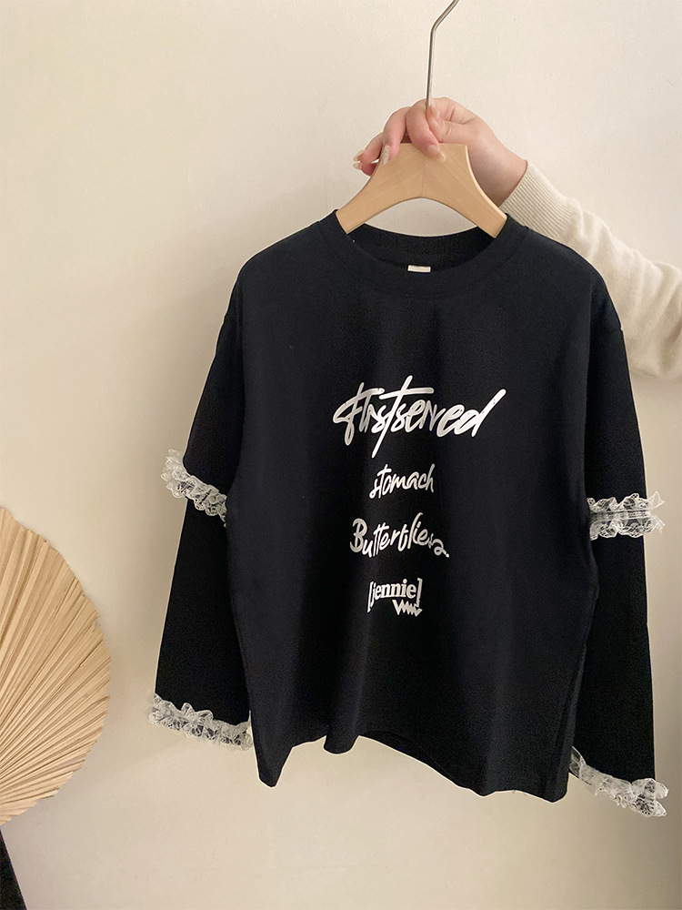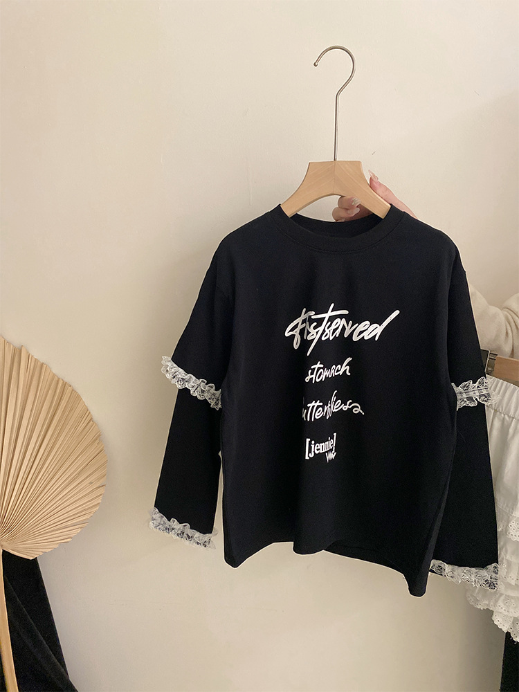 소녀 2025 봄 한국 스타일 새로운 유행 편지 레이스 탑 귀여운 레이스 케이크 스커트 투피스 세트
