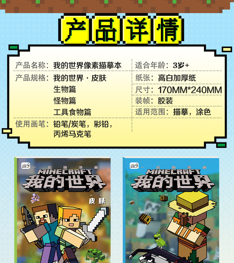 My World Pixel Painting MC Tracing Book Painting Book Primary School 어린이 그림 튜토리얼 북 애니메이션 만화 앨범스토어 가기