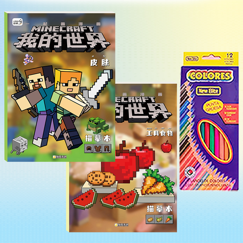 • 마인크래프트 2권 [스킨 + 도구 및 음식] + 연필 세트