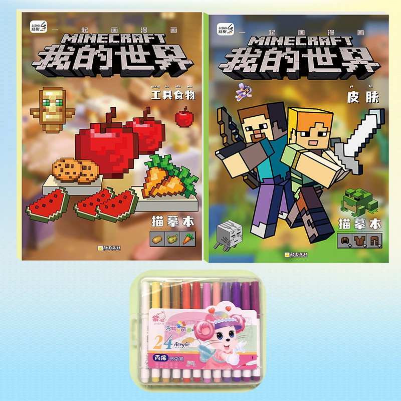 • 마인크래프트 2권 [스킨 + 도구 및 음식] + 컬러 마커 24개