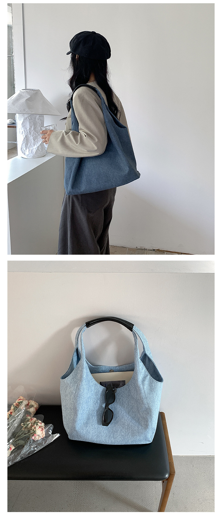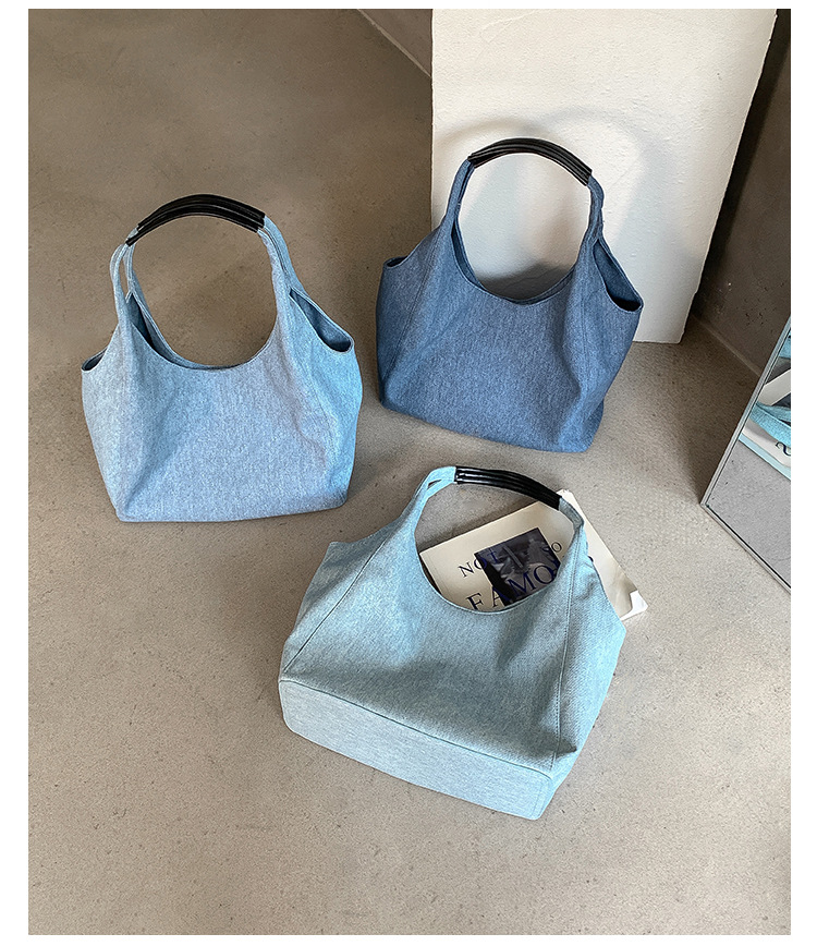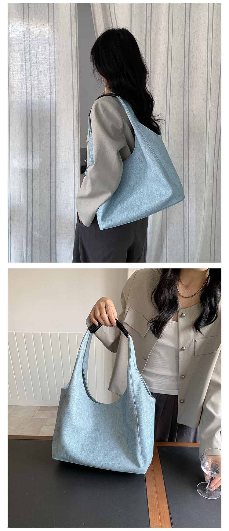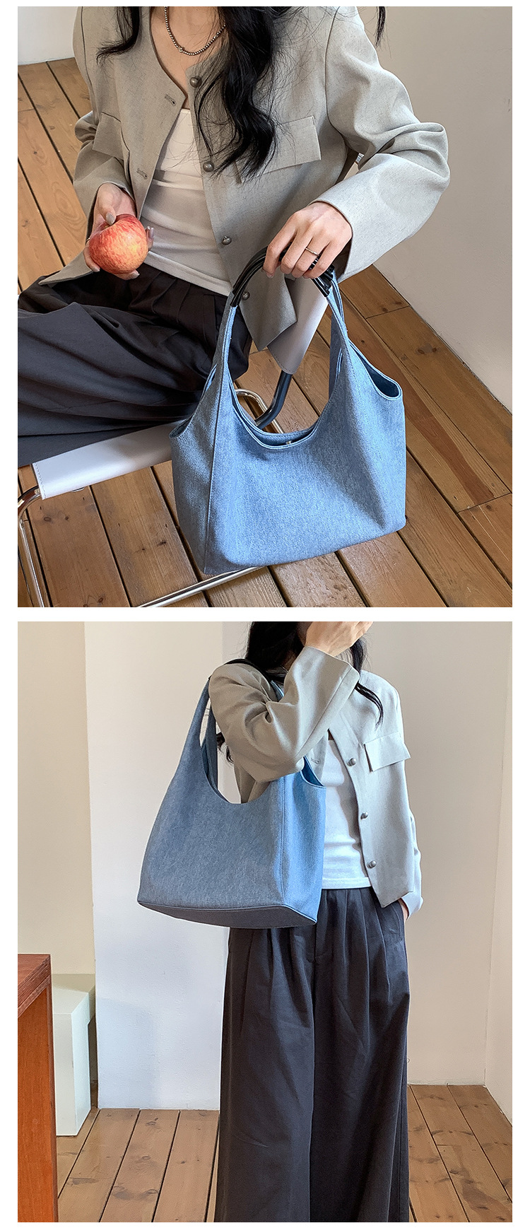 새로운 스타일의 모조 데님 통근 가방, 패셔너블하고 활용도가 높은 토트백, 대용량 여성 캐주얼 휴대용 숄더백스토어 가기