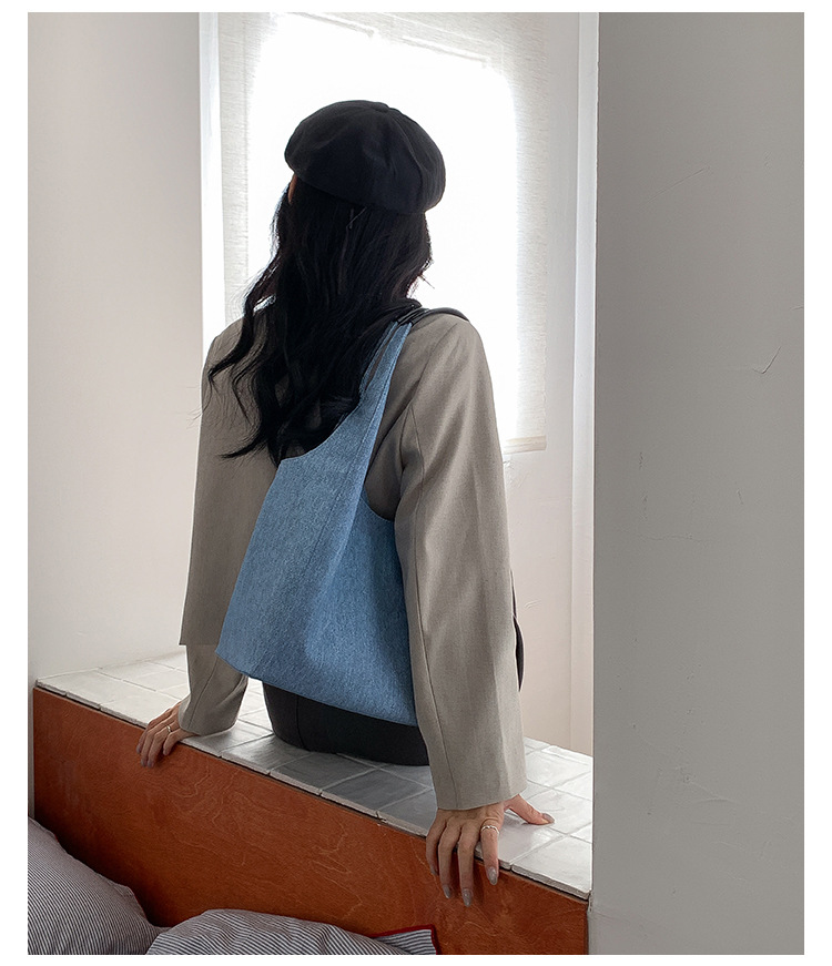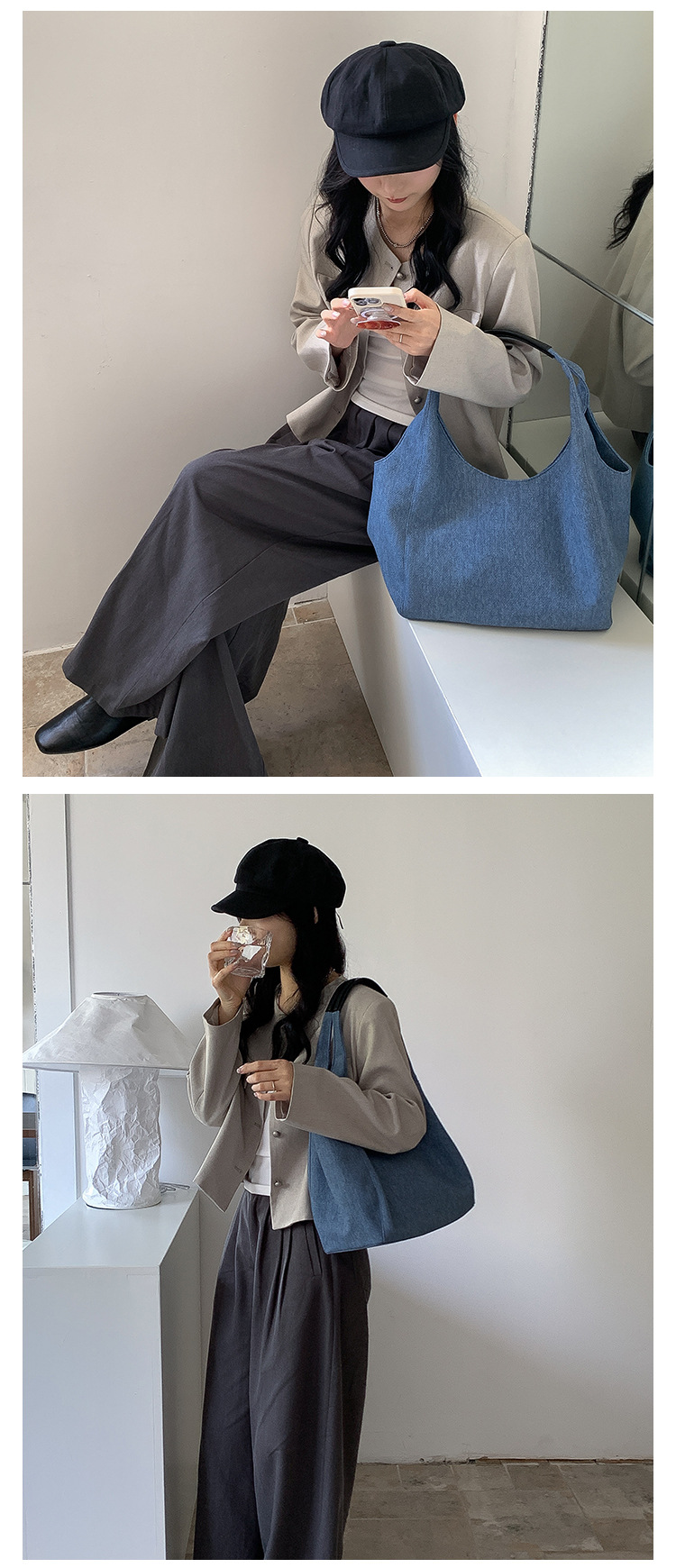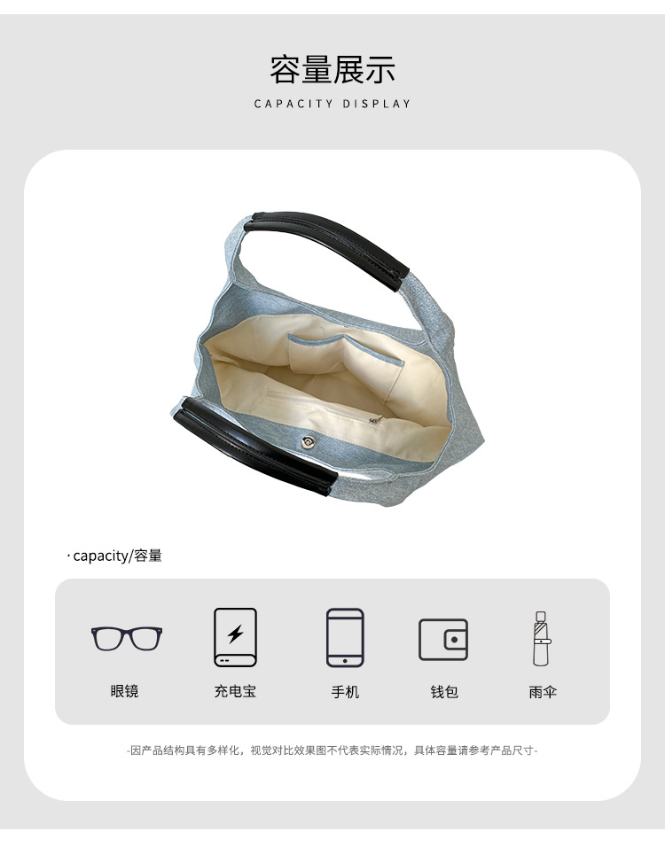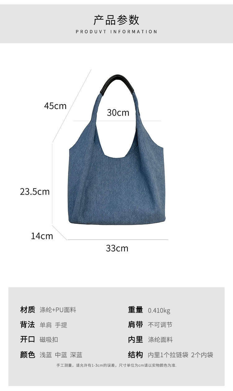 새로운 스타일의 모조 데님 통근 가방, 패셔너블하고 활용도가 높은 토트백, 대용량 여성 캐주얼 휴대용 숄더백스토어 가기