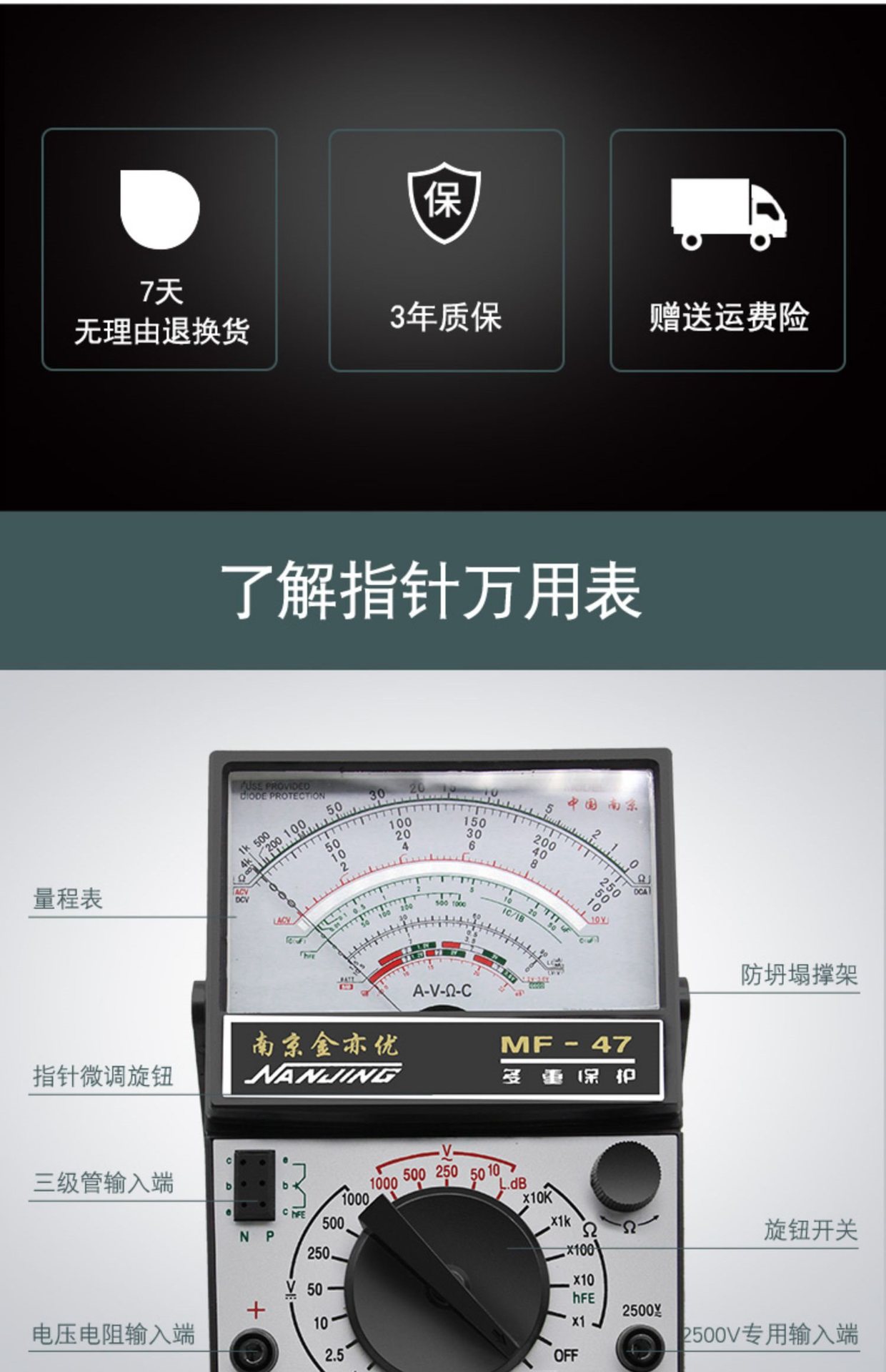 난징 MF47 내부 자기 포인팅 멀티 미터 기계 고정밀 안티 연소 버저 전체 보호 미터 무료 배송