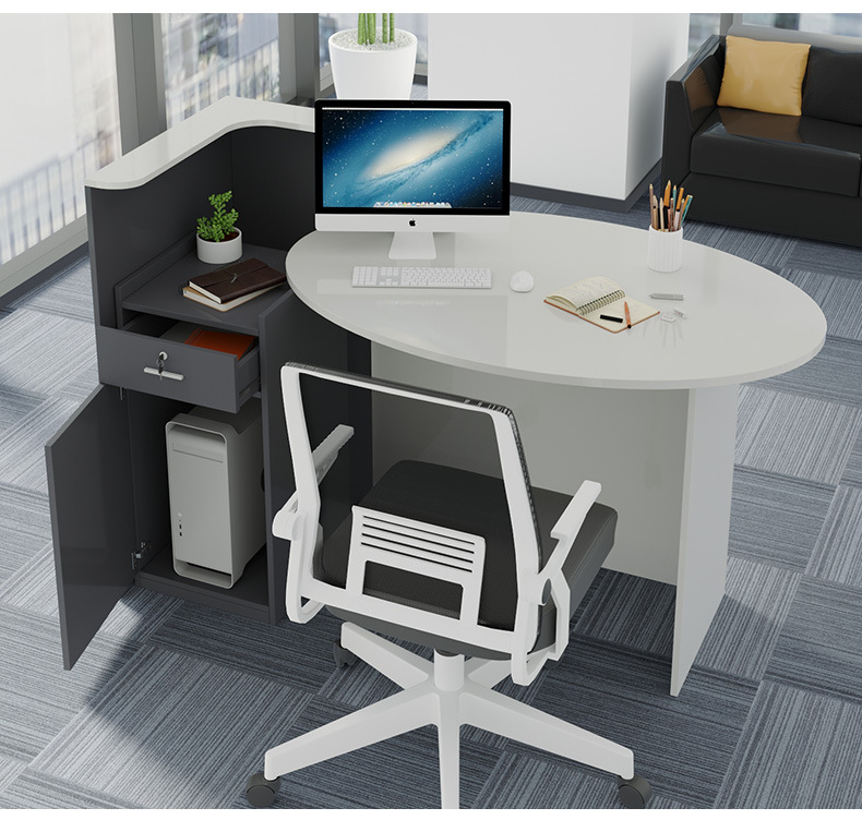 • 흰색 + 회색(오른쪽 모서리 + 의자) 캐비닛 도어 포함