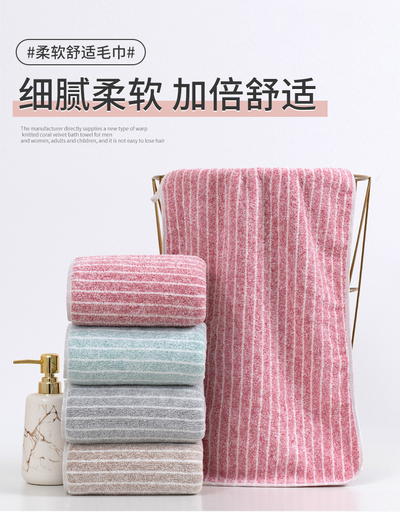 클래식 산호 양털 수건 부드러운 흡수성 수건 따뜻한 양털 줄무늬 수건 남성과 여성 가정용 수건 공장 도매스토어 가기