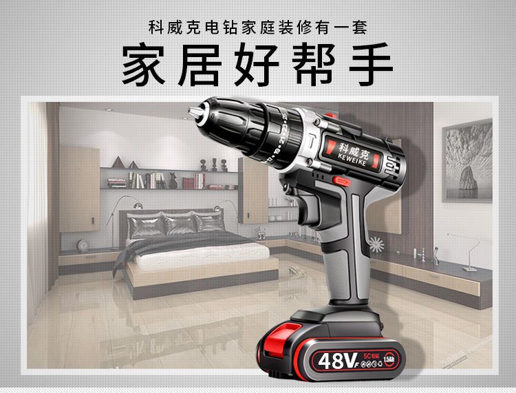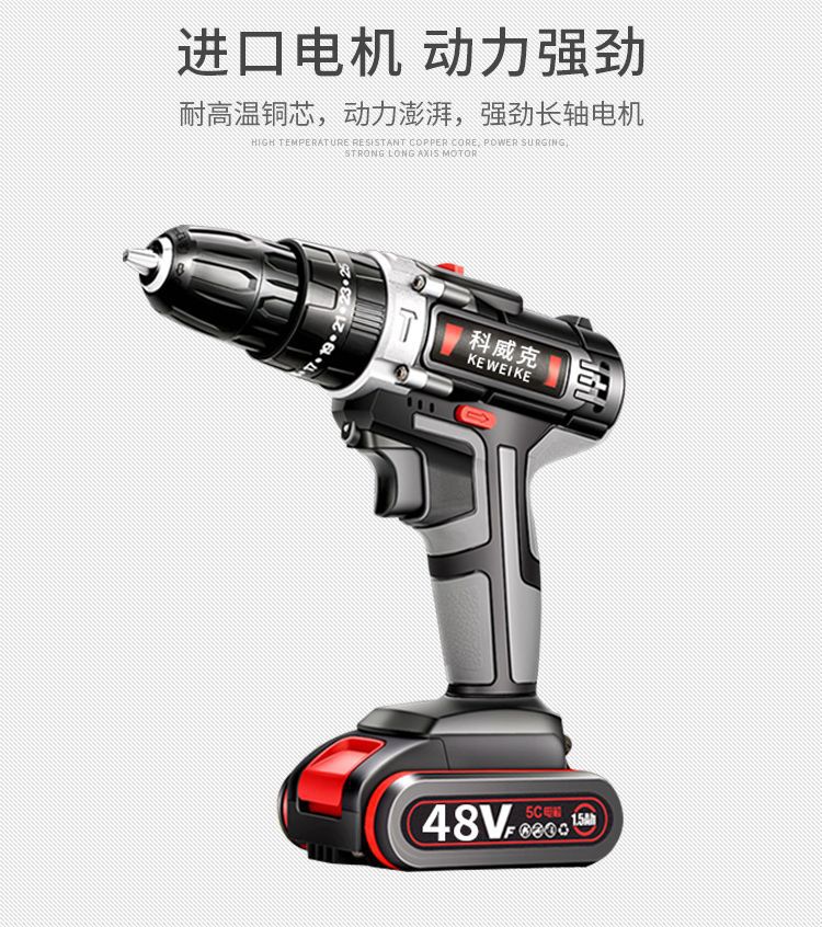• 48V 2단 속도 임팩트 모델, 배터리 1개 및 플라스틱 상자 액세서리 1개