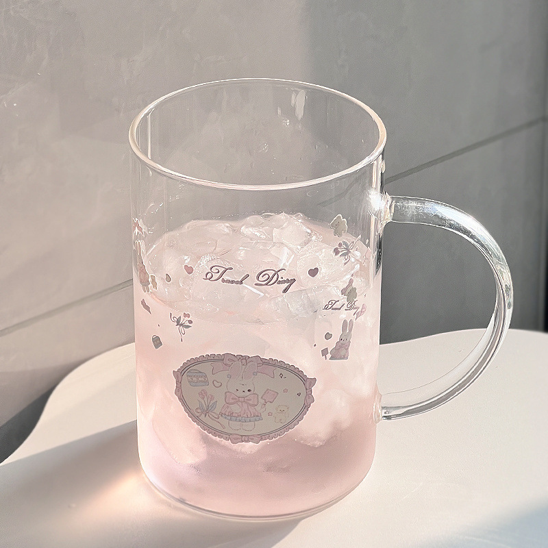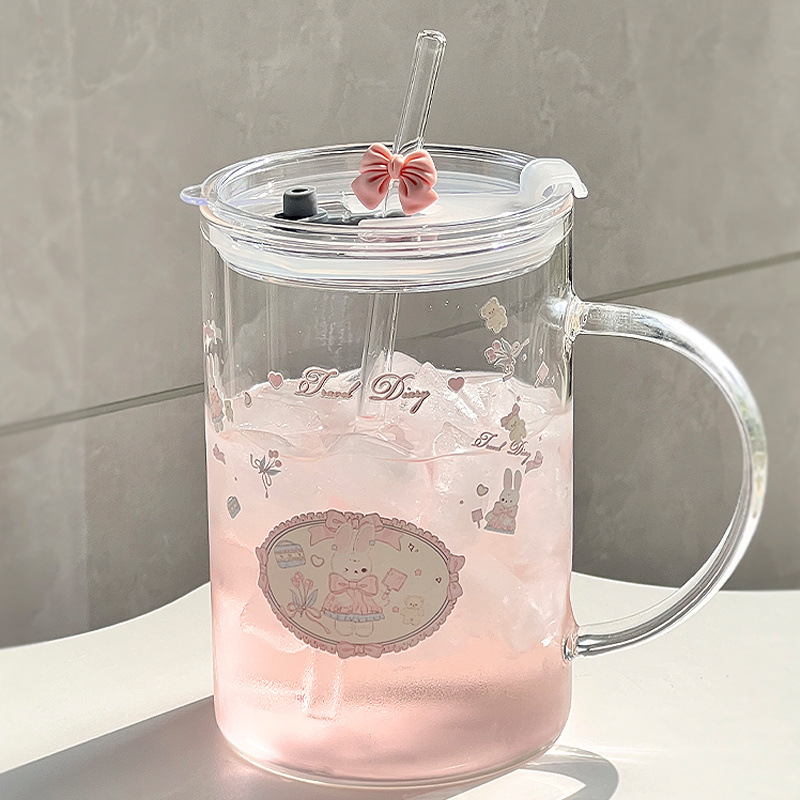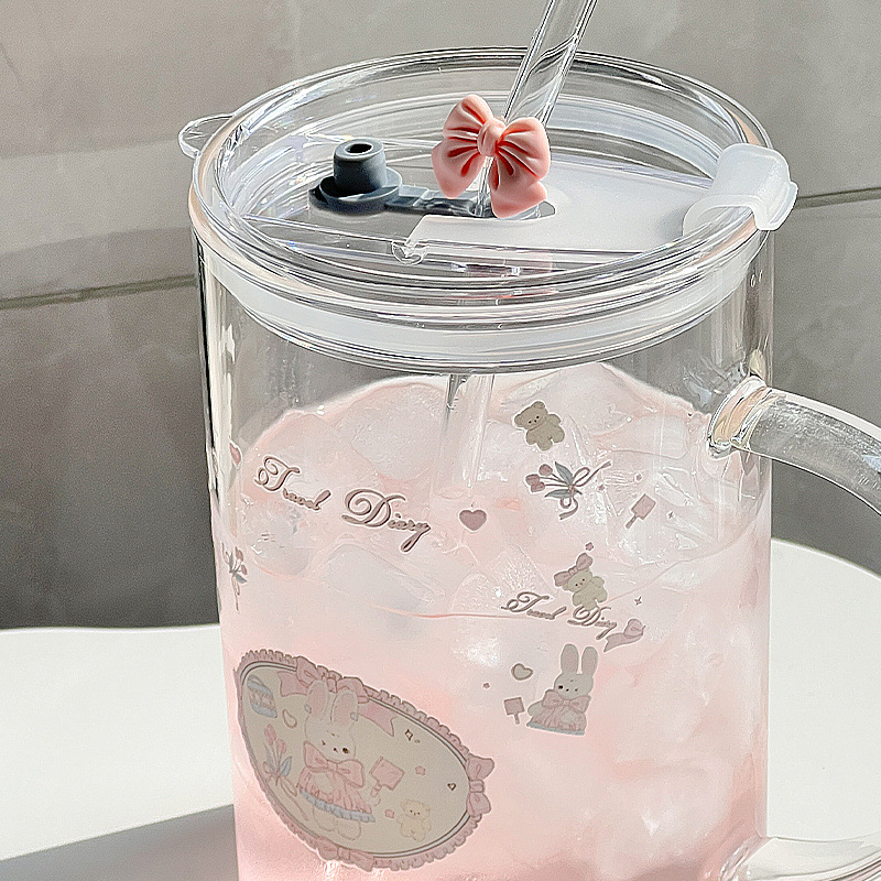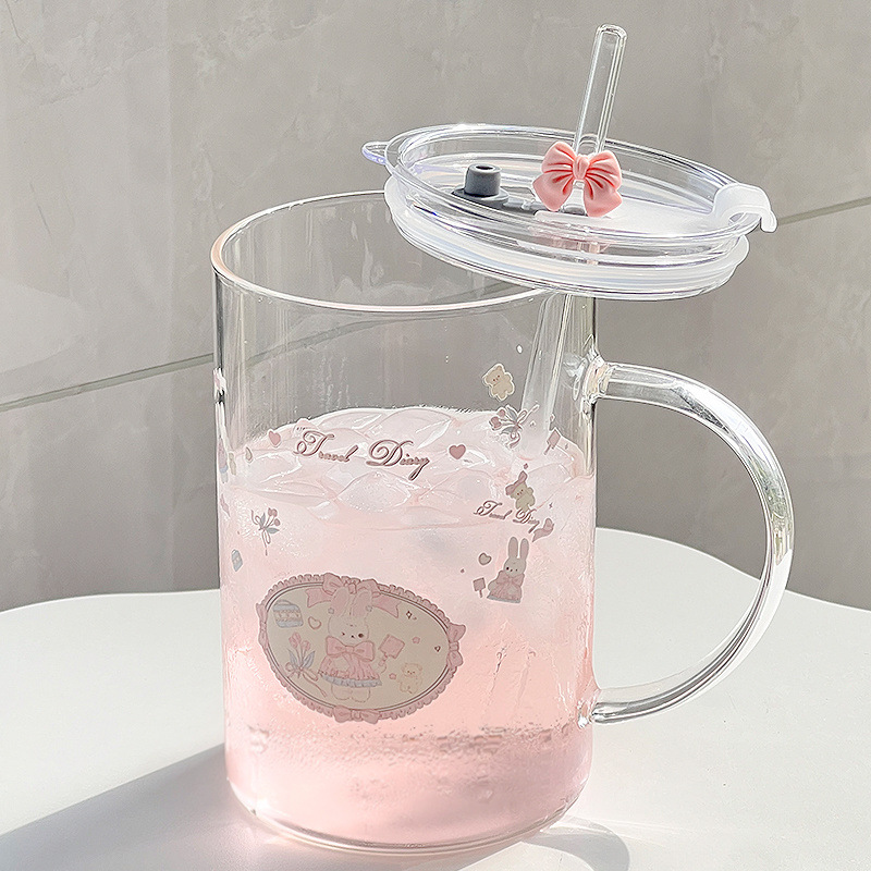 대용량 높은 색상 가치 찬 음료 과일 차 유리 손잡이 밀짚 물 컵 가구 1 차 컵 학생