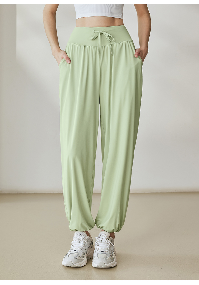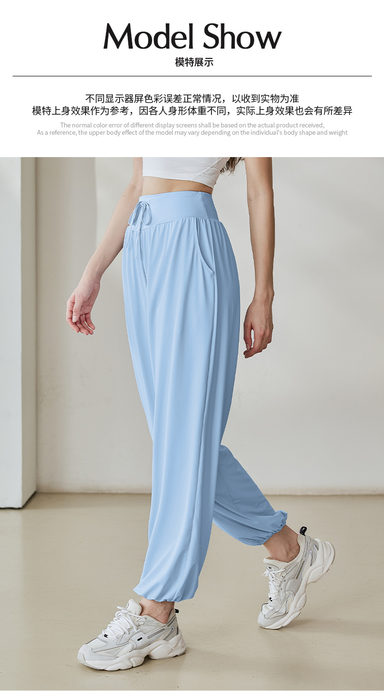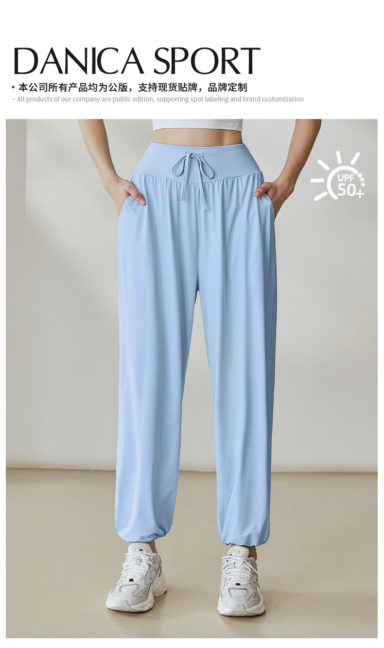 UPF50 아이스 실크 선스크린 바지 여성용 높은 허리 엉덩이 리프팅 탄성 꽉 달리기 훈련 외부 피트니스 스포츠 요가 바지를 입고